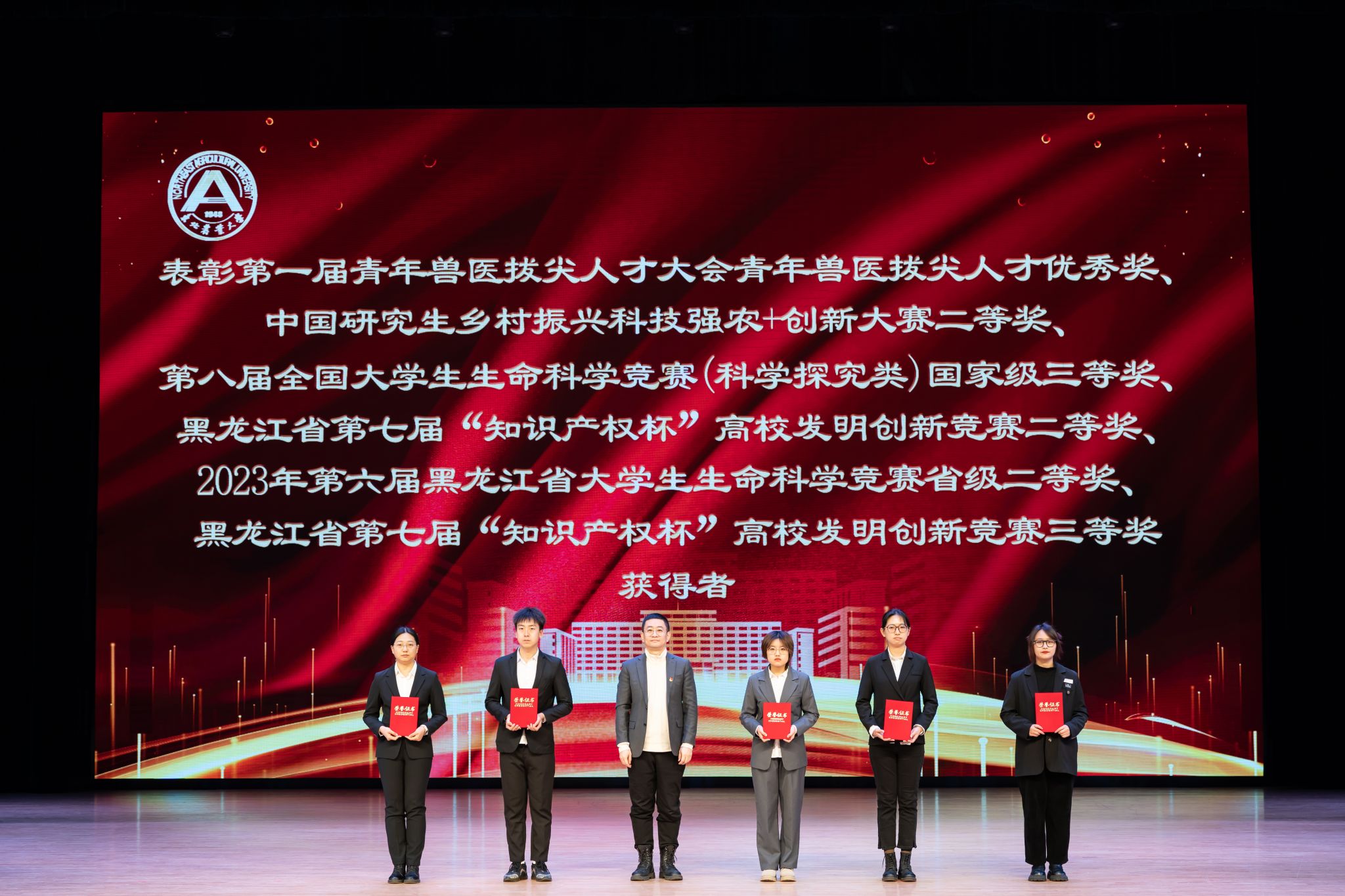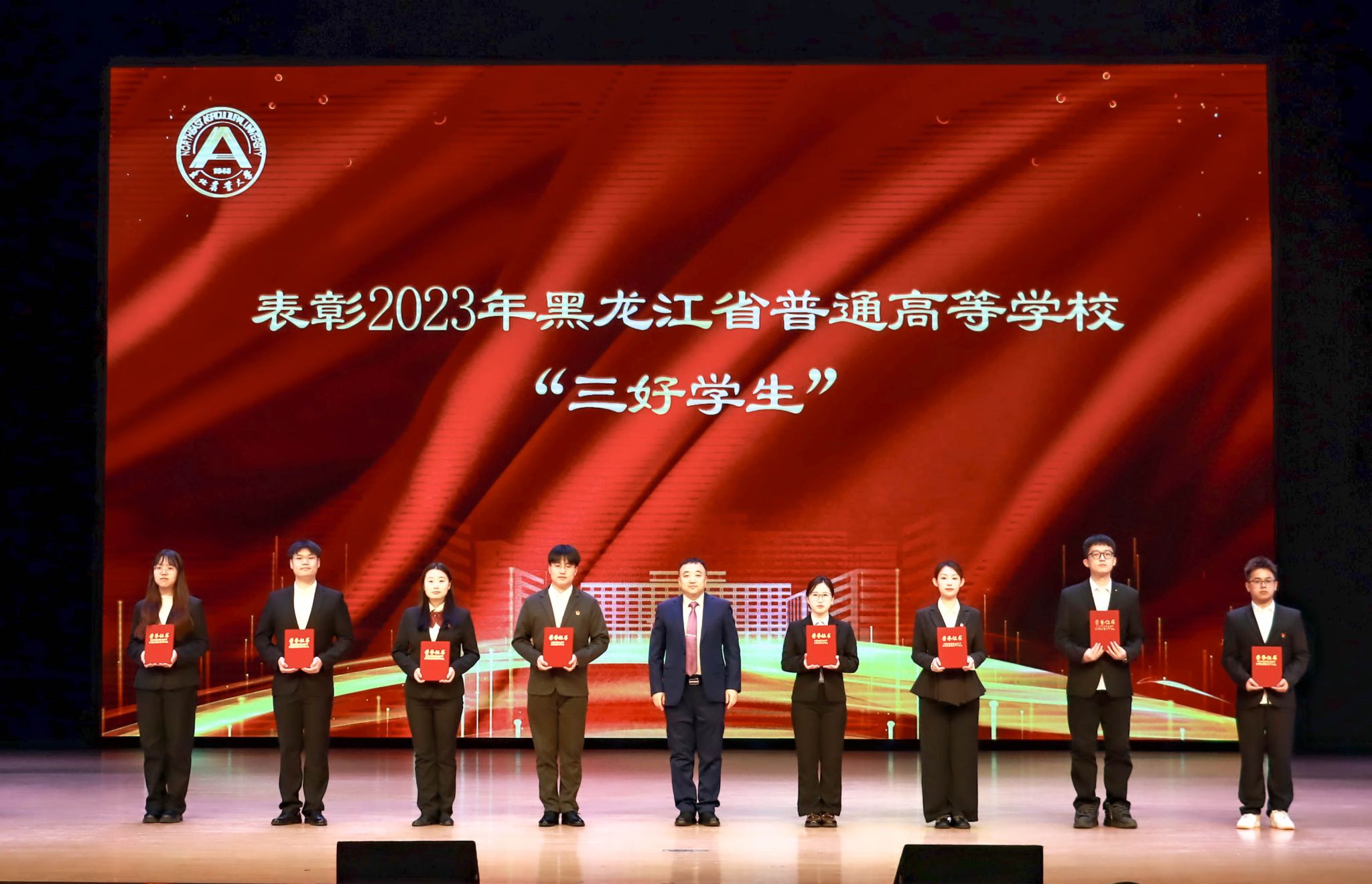 大会表彰了“国家奖学金”获得者12人、“国家励志奖学金”获得者38人、“黑龙江省普通高等学校‘三好学生’”41人、“本科生单项奖学金”获得者201人、“优秀研究生”18人、“优秀研究生干部”4人、“大学生年度人物”1人、“先进班集体”3个、“星级文明寝室”8个、“省级以上优秀个人荣誉”6个。