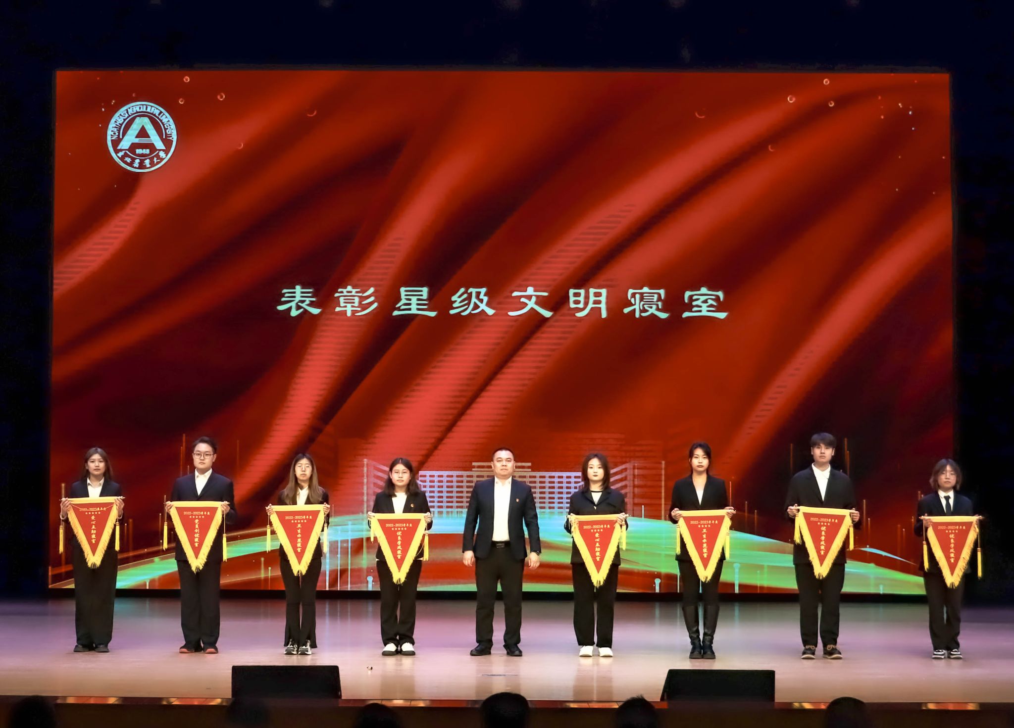 副院长李巍宣读《关于表彰2022-2023学年度星级文明寝室的决定》,并为获奖集体颁奖。