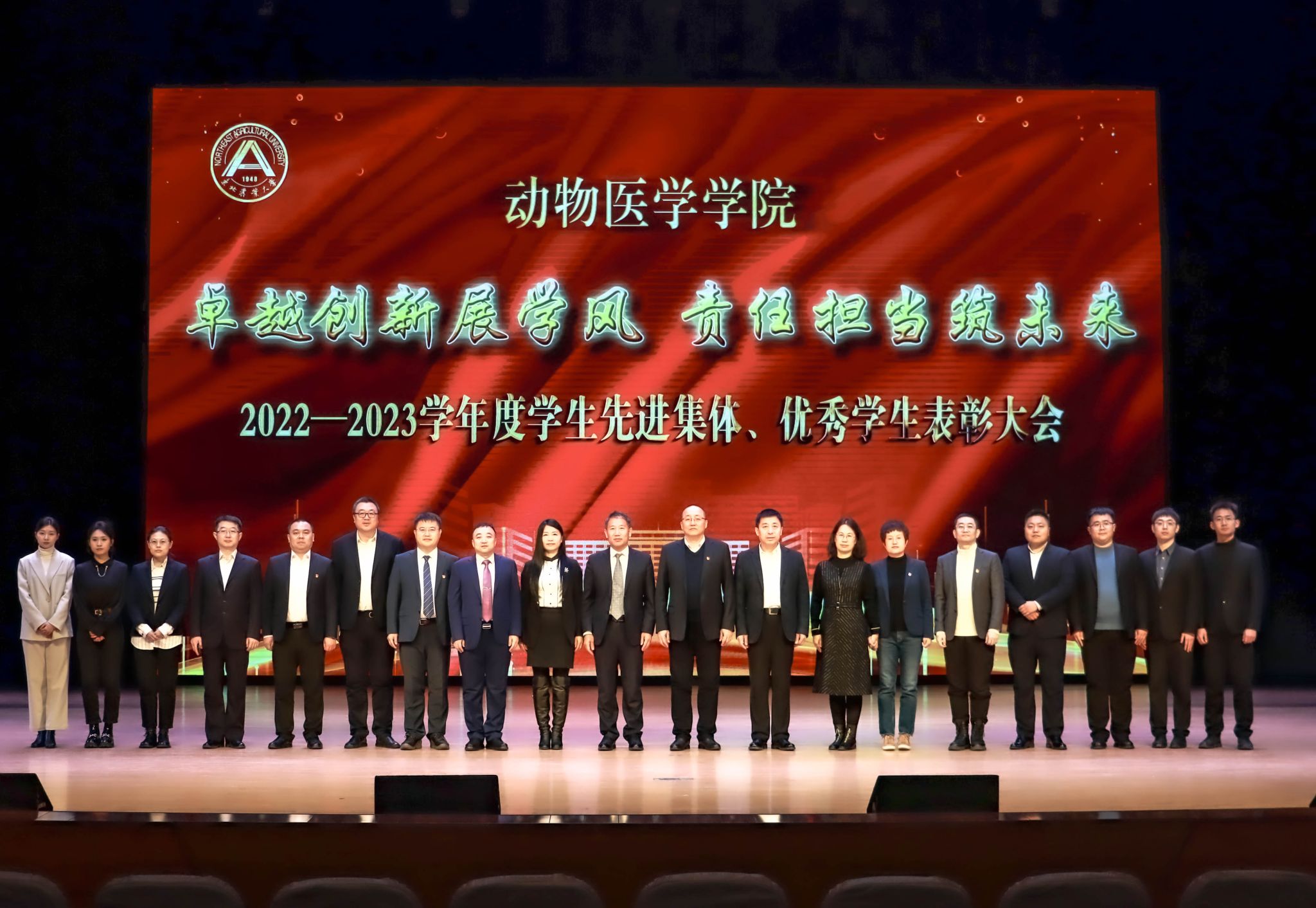 3月19日晚,动物医学学院“卓越创新展学风 责任担当筑未来”2022-2023学年度学生先进集体、优秀个人表彰大会在音乐厅隆重召开。学校学生工作部部长于兴业、招生就业处处长宋跃芬,学院全体领导班子成员,学院办公室、教务科、团委、学工办负责人、各系系主任、二级学科带头人、全体辅导员、本科生班主任代表、在校非毕业年级全体本科生和研究生出席大会。大会由学院党委副书记赵文和主持。
