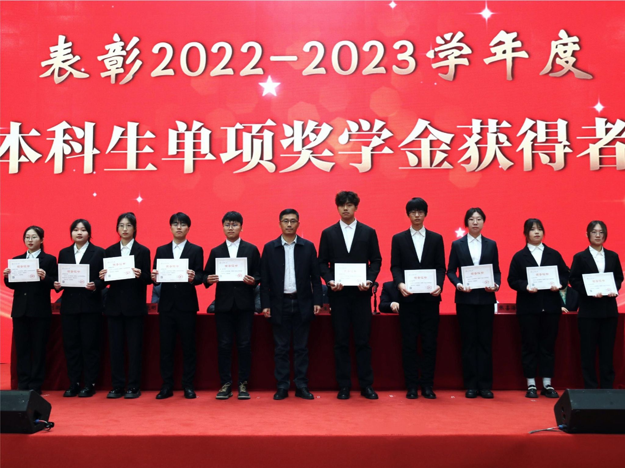 电气与信息学院2023年共有4名本科生、2名硕士研究生获得国家奖学金;99名本科生获得国家励志奖学金;63名本科生、研究生获得黑龙江省“三好学生”荣誉称号;492人次获得学校本科生单项奖学金、8人次获得学校优秀研究生、优秀研究生干部;1人次获得学校大学生年度人物;7个班级获得学校本科生、研究生先进班集体。获奖学生代表依次上台领奖。