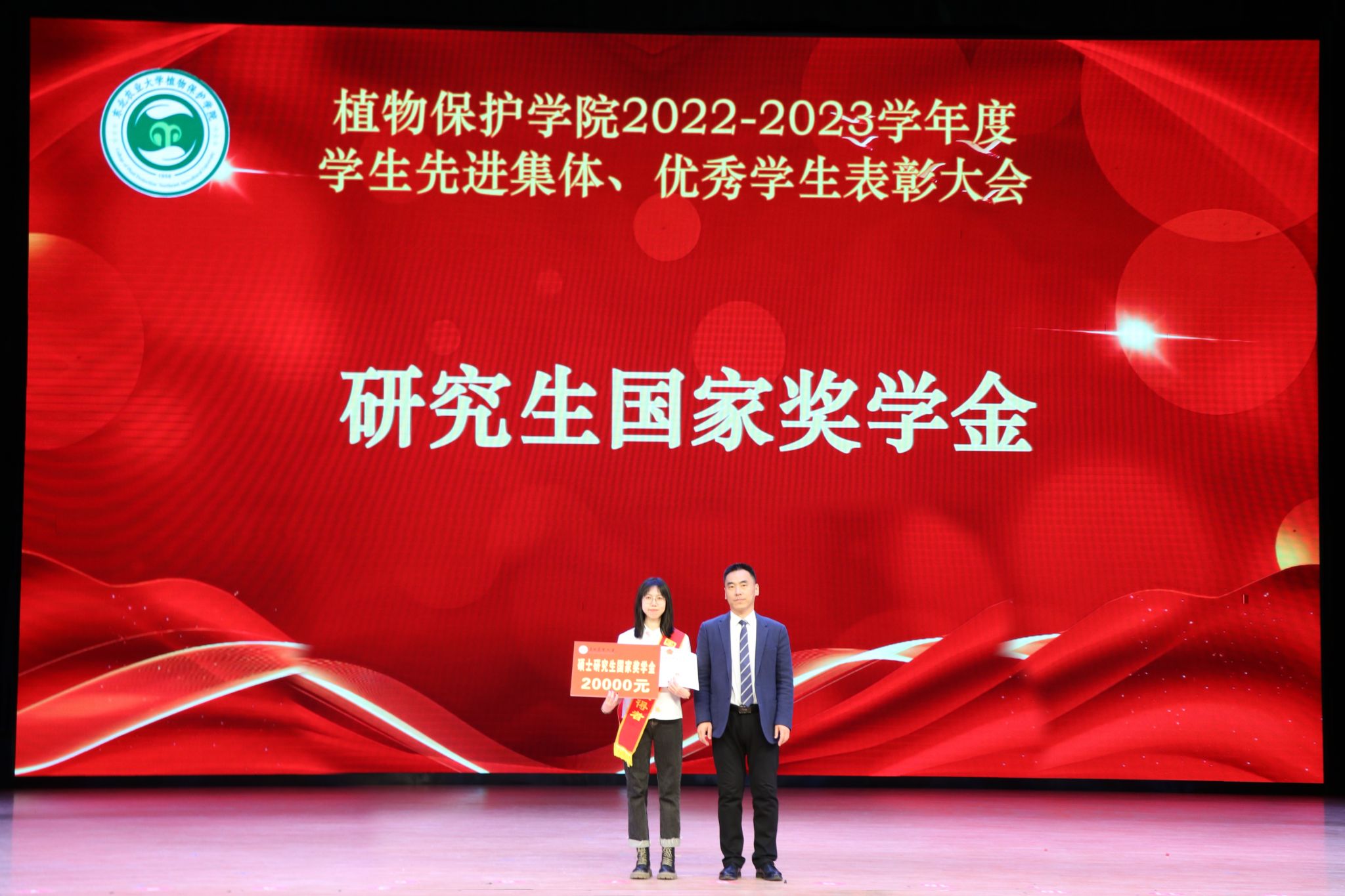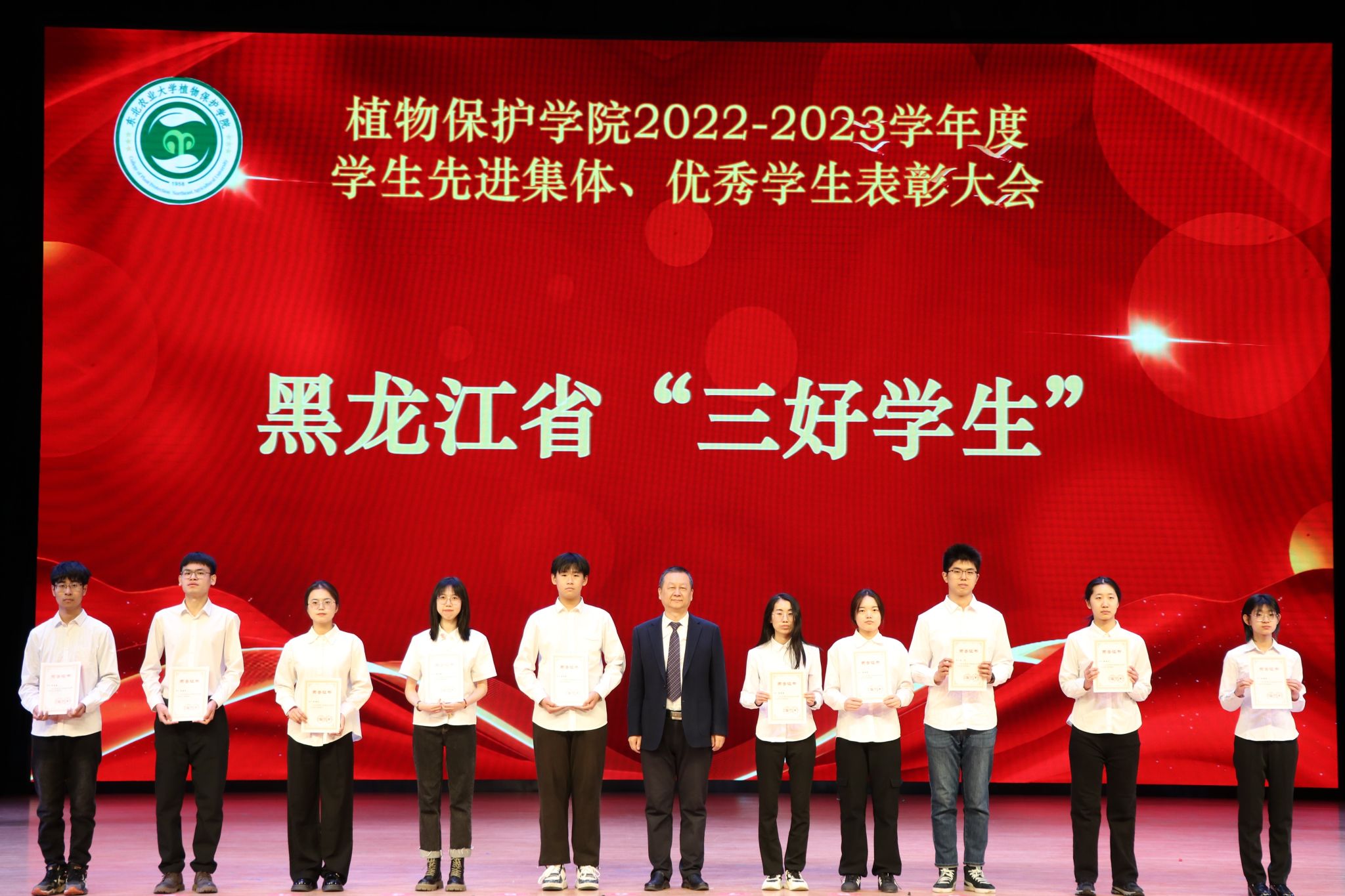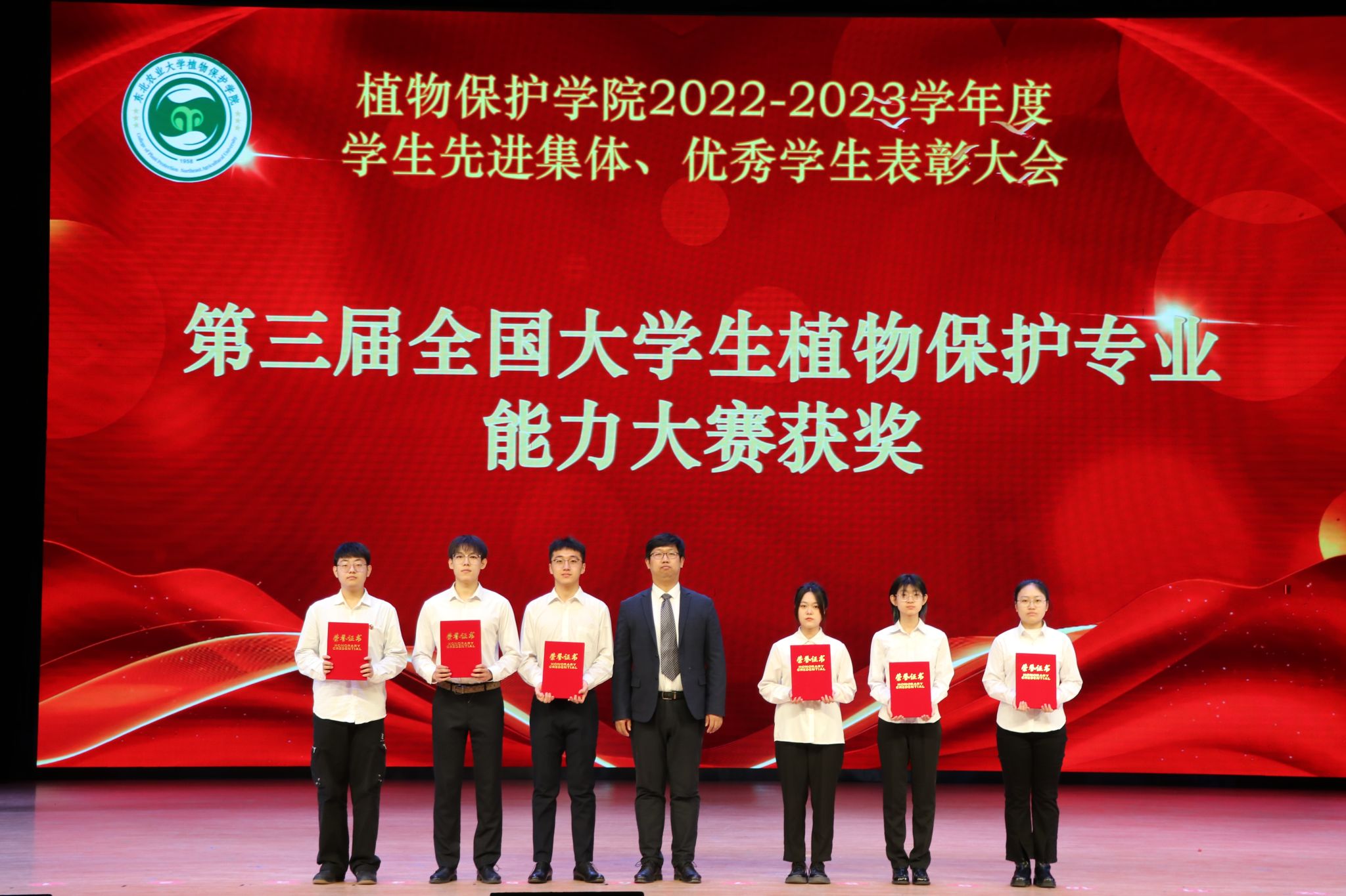 为落实立德树人根本任务,鼓励学生树立远大理想,不断追求进步,在全院范围内营造比、学、赶、帮、超的良好氛围。,3月24日上午,植物保护学院在音乐厅隆重召开“爱校如家 当好主人翁”2022-2023学年度学生先进集体、优秀学生表彰大会。学校学生工作部部长于兴业、植物保护学院党委书记赵东旭、院长樊东、副院长李秋月、农业昆虫系主任谢桐音、植物病理系主任宋爽、全体辅导员及全体本科生和研究生参会。大会由学院副处级辅导员张贺主持。