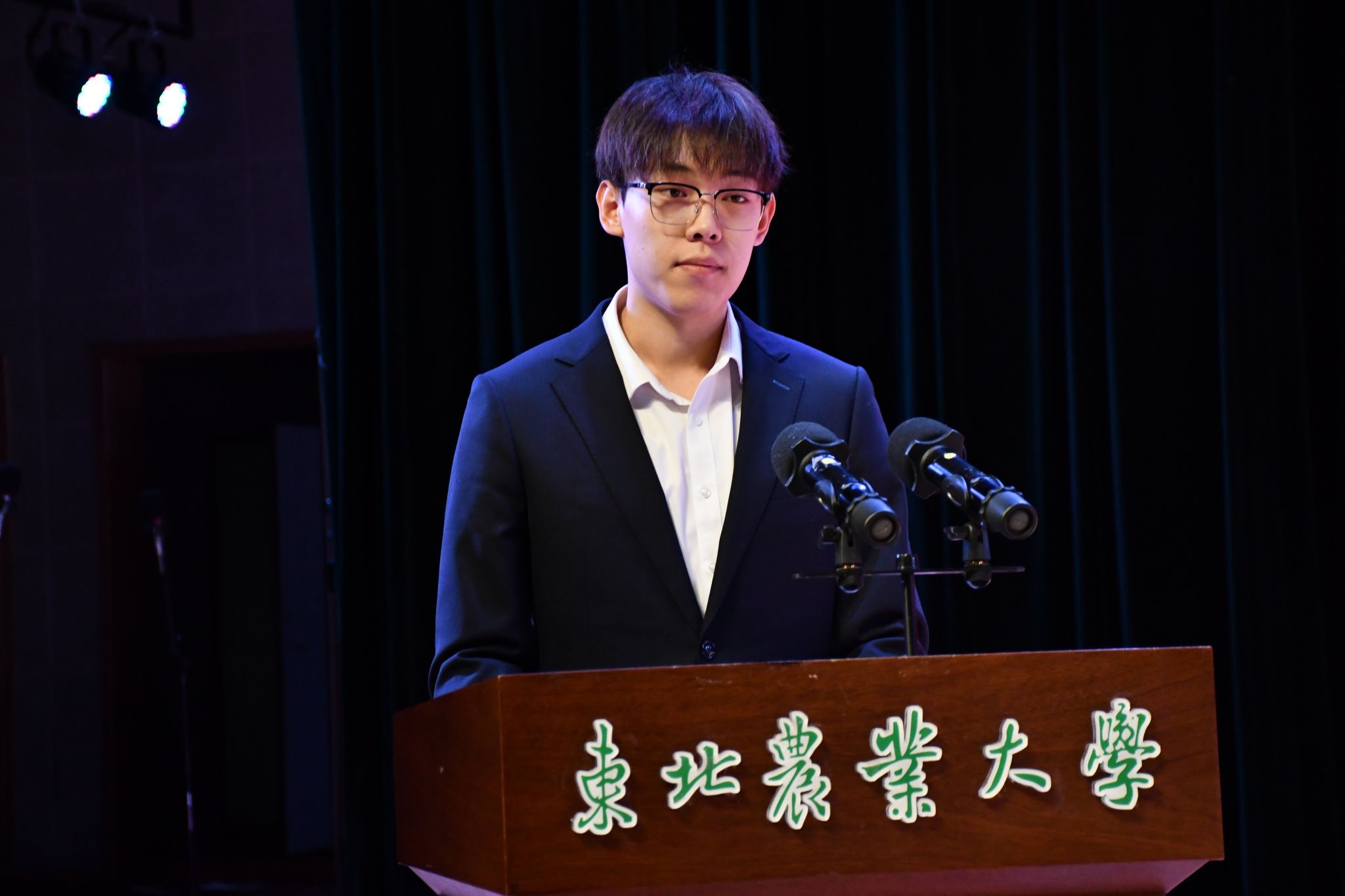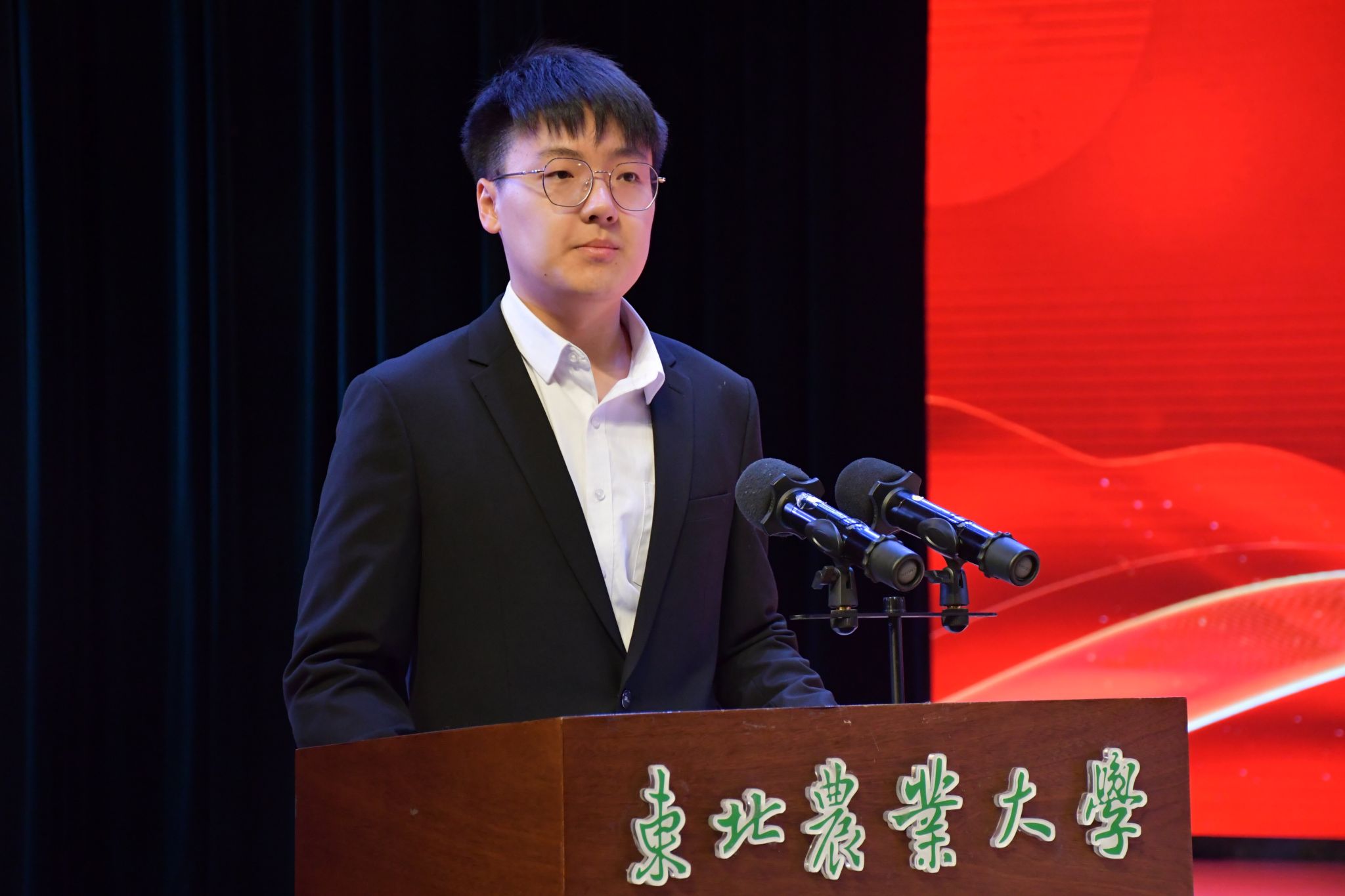 本科生获奖代表植保2104班张弘弛发言。他表示,回首过去,我们披荆斩棘,硕果累累;展望未来,我们要以更加饱满的热情、更加坚定的信心,迎接新的挑战与机遇。他呼吁同学们要树立家国情怀、自觉明德修身、立志奉献“三农”,胸怀国家富强和民族振兴的中国梦。
