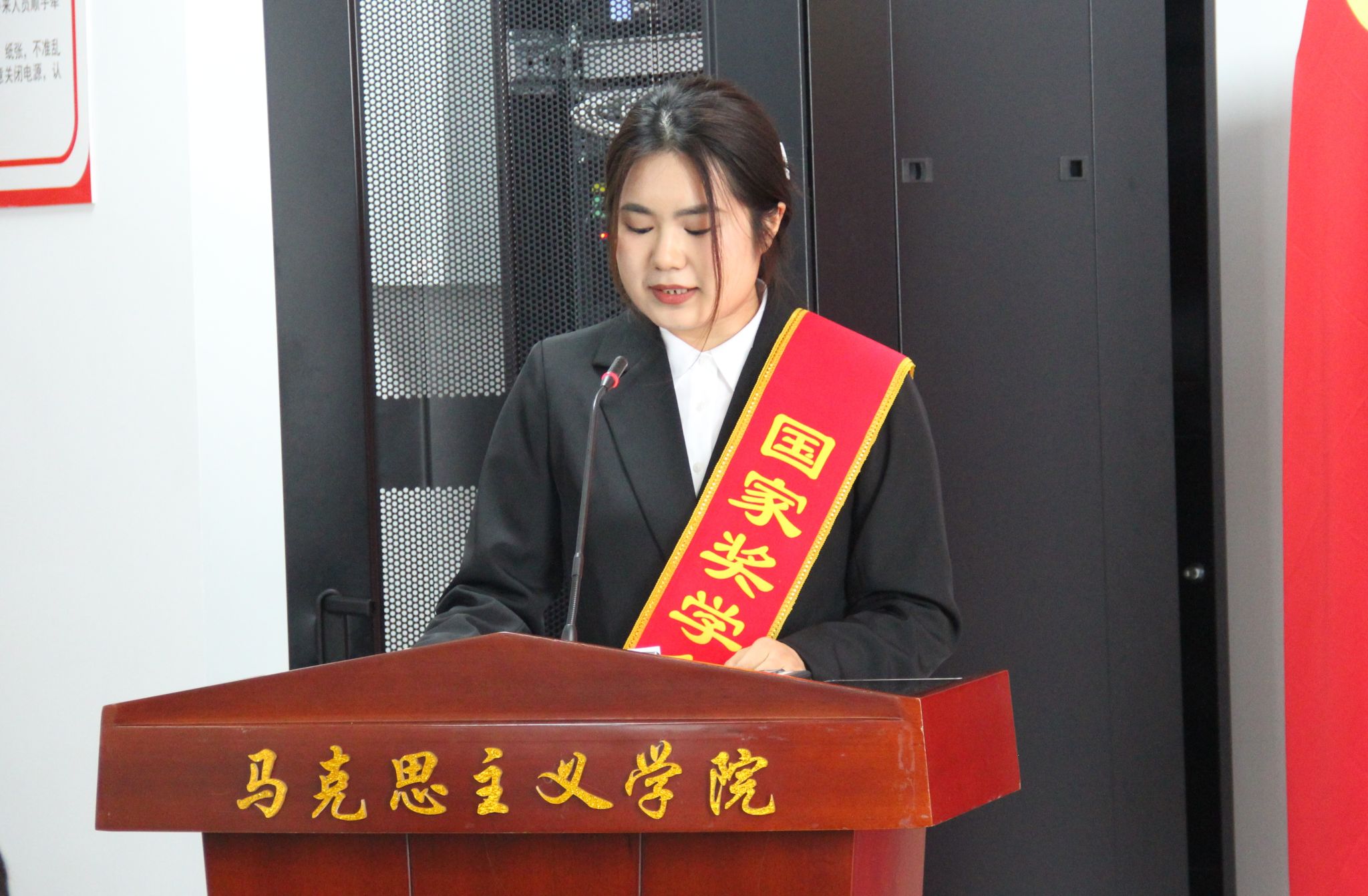 国家奖学金获得者2021级马克思主义基本原理专业王心雨同学分享了自己在过去两年多研究生生活中的学习经验,激励同学们要奋发图强,锐意进取,坚定马克思主义信仰,用执着深沉的家国情怀,让青春之花绚丽绽放。