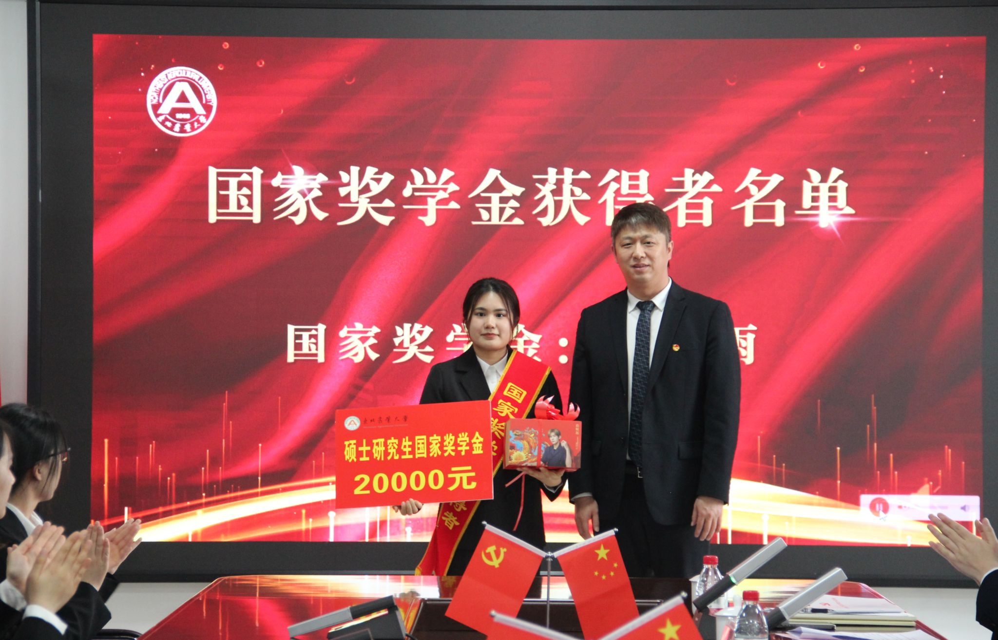 李卡为研究生国家奖学金获得者颁发证书和奖品