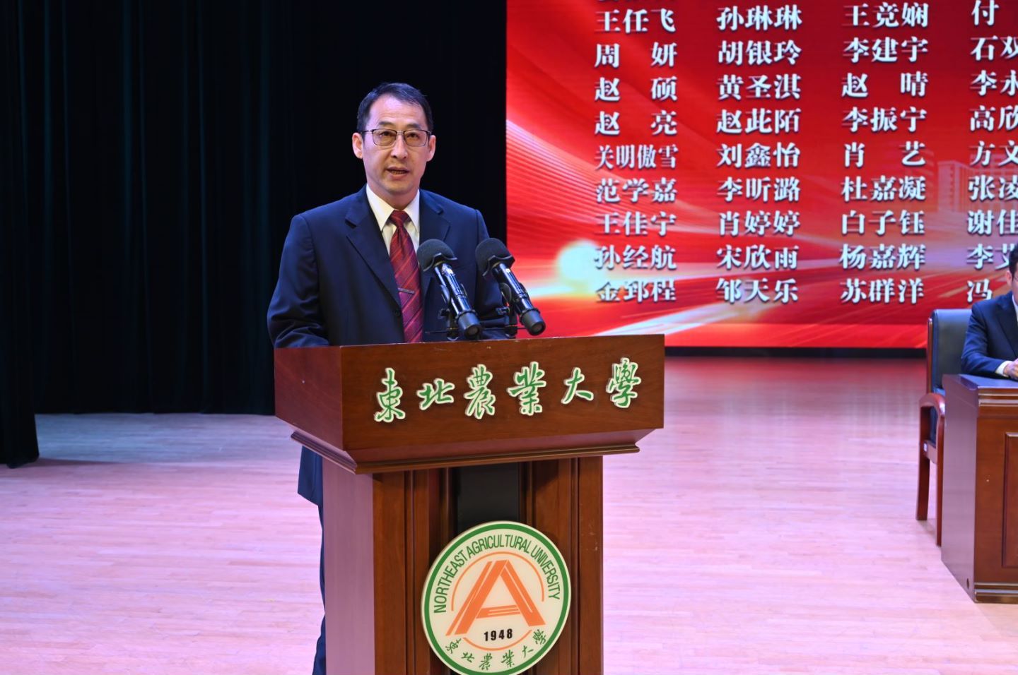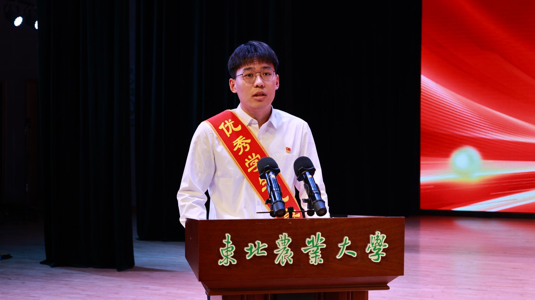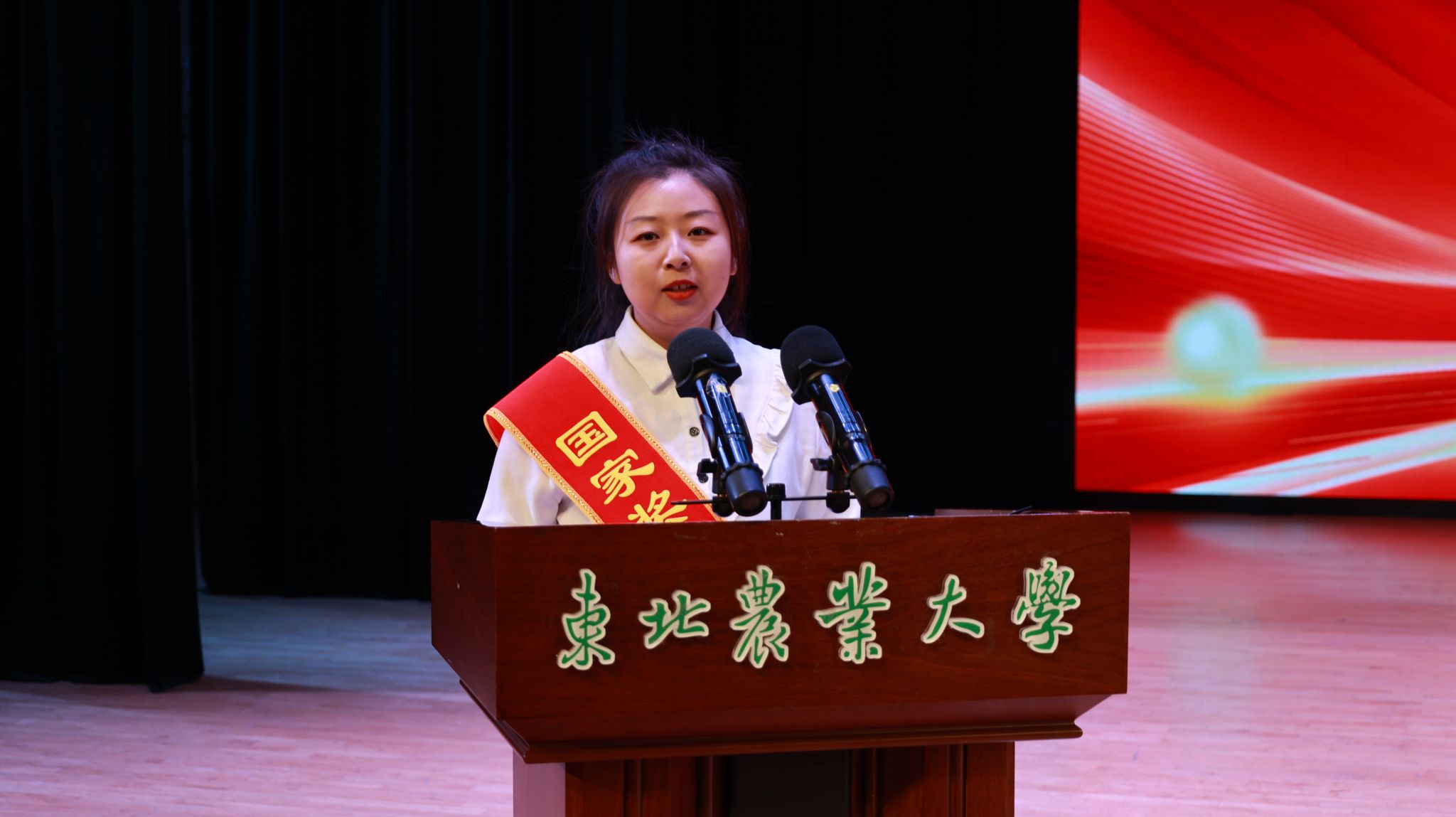 随后,国家奖学金获奖代表、博士研究生邢璐,国家励志奖学金获奖代表、本科生马祥钧和校先进班集体获奖代表、生学2101班王恒依次发言。邢璐分享了自己在东农生命就读本、硕、博十年来的奋斗历程,以“自信、乐观、坚持”勉励全体同学勇敢追梦、勇攀高峰;已保送至同济大学的“秦鹏春班”学生马祥钧号召全体同学,继承东农老一辈科学家精神,树立远大理想,夯实理论基础,积极投身科研,提升综合能力,争做国家所需的新时代生命学人;王恒从如何提高班级凝聚力、建设良好的班风及寝风分享了先进班集体建设的宝贵经验。