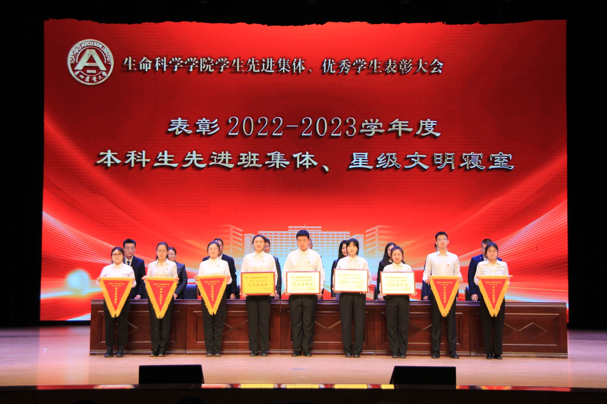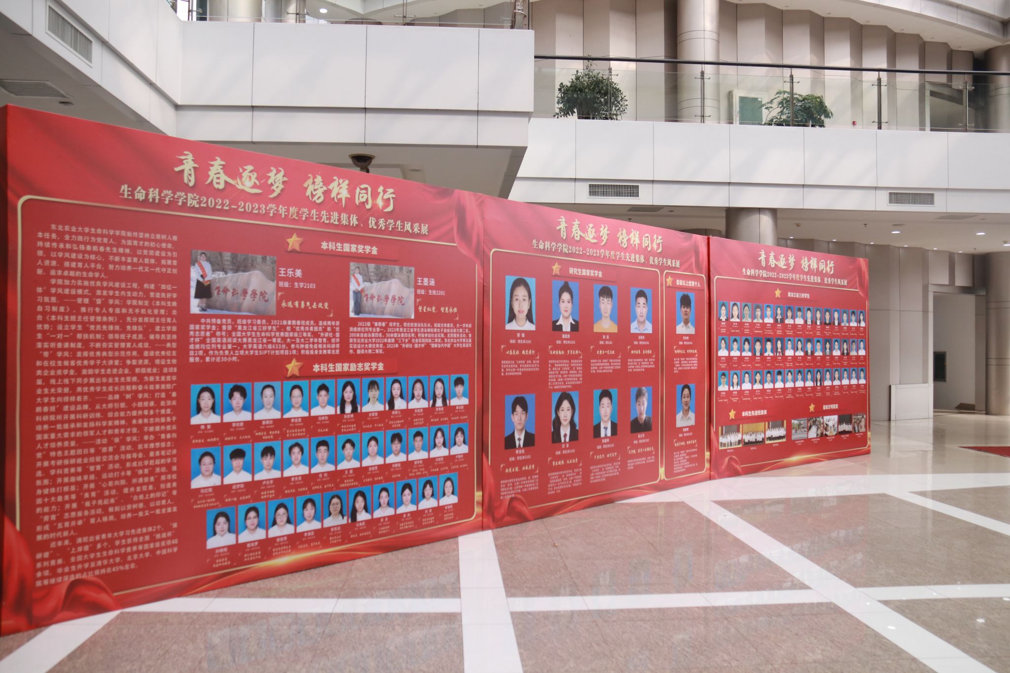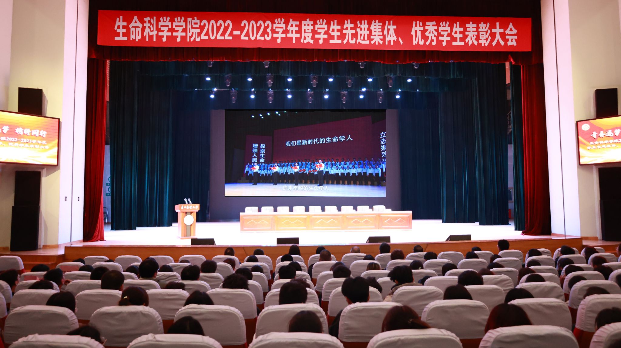 生命科学学院以本次表彰大会为契机,形成线下、线上联动,通过先进集体和优秀个人专访、制作宣传视频、展出宣传展板等多种形式、多个角度对受表彰的个人和集体事迹进行展示,扩大宣传、教育覆盖面,全方位营造积极向上、奋勇争先的良好学习氛围。