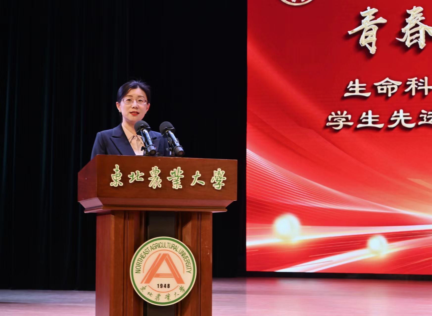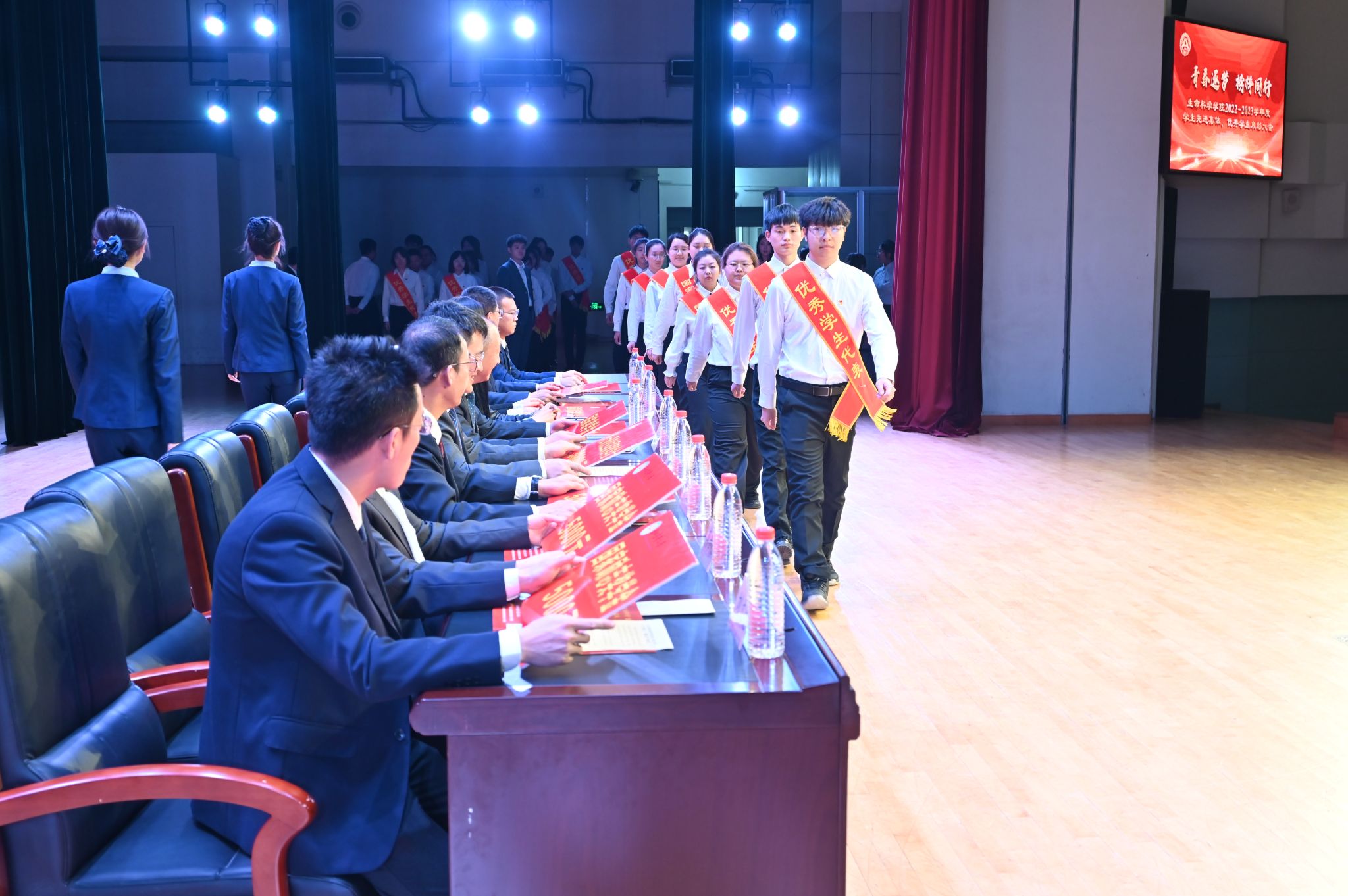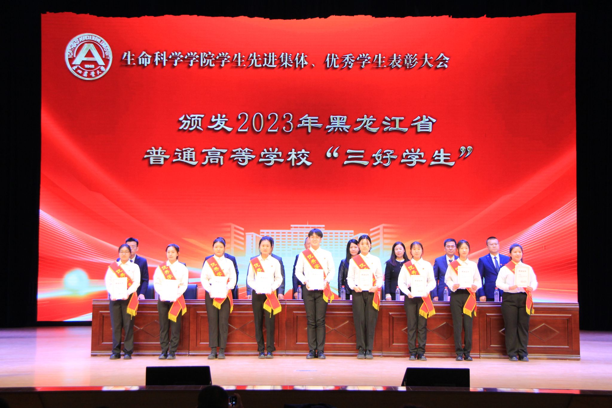 为进一步落实立德树人根本任务,持续加强学风建设,充分发挥榜样示范引领作用,激发全体学生向身边榜样看齐、向优秀典型学习,使优良学风在东农校园蔚然成风,3月27日下午,生命科学学院“青春逐梦 榜样同行”2022-2023学年度学生先进集体、优秀学生表彰大会在音乐厅隆重举办。校学生工作部(学生处、武装部)部长于兴业、校招生就业处处长宋跃芬,学院全体领导班子成员,本科生班主任、党支部书记、系主任、部分教师代表及全体辅导员出席大会,非毕业年级全体本硕博学生到场参会,会议由学院党委副书记孙珠红主持。