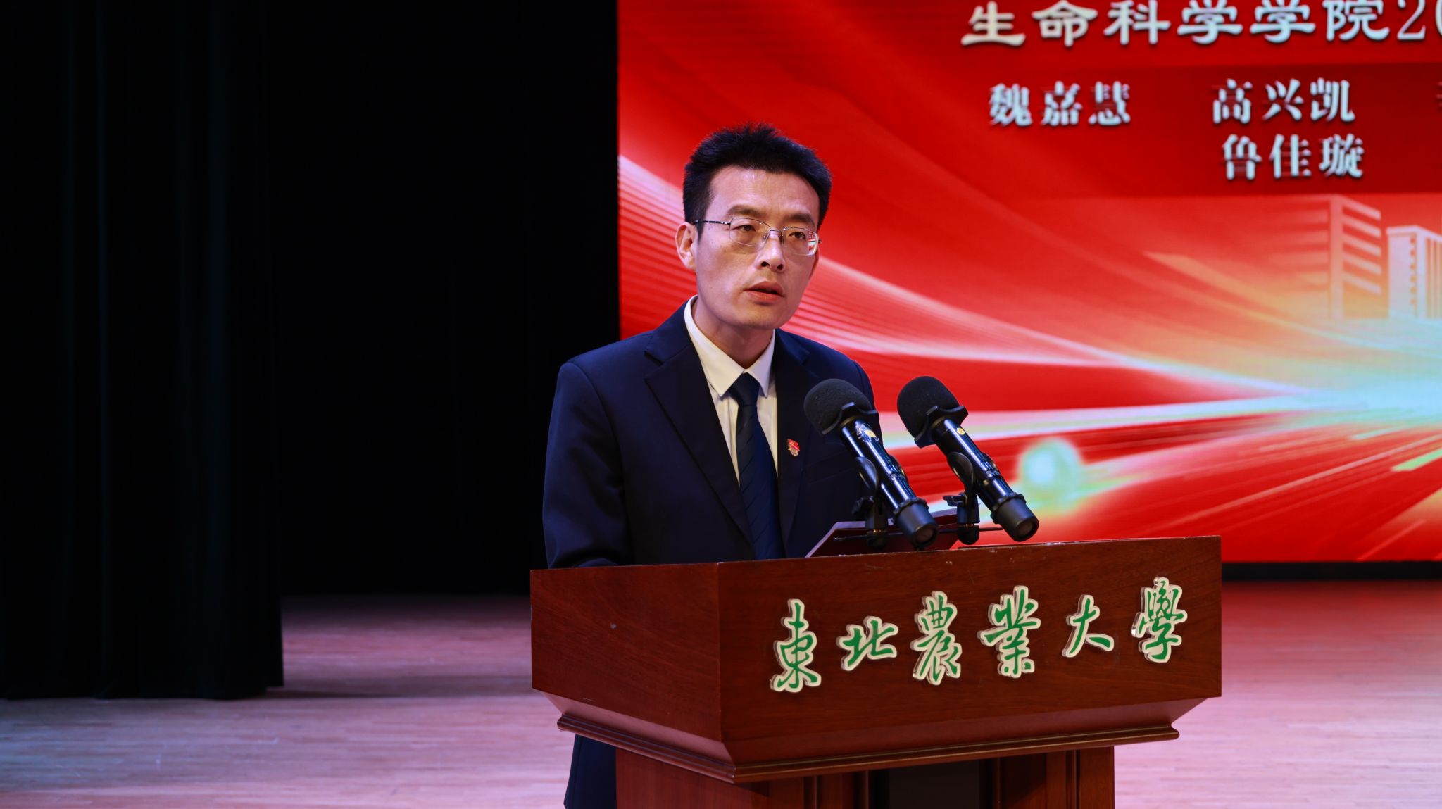 学院党委书记施喜军对受到表彰的先进集体和优秀个人表示祝贺,也对给予学院大力支持帮助的学校职能部门和为同学们成长成才辛勤付出的全体老师表示感谢。他表示,今年是学校世界一流学科和省高水平大学建设的关键之年,也是学风建设年和组织开展“爱校如家、当好主人翁”活动之年。学院作为世界一流学科建设支撑学院、黑龙江省首批生物学高水平培养基地建设学院,机遇与挑战并存,责任与使命同在。他向同学们提出三点希望:一是志存高远,练就过硬本领。作为“强国一代”,出生于国家崛起之时,成长于民族复兴之际,要树立科技爱国、科技报国、科技强国的远大理想,担负起时代赋予的光荣使命,在实践中锻炼,在奋斗中成长,不断提升能力与本领,奋力书写壮丽的人生华章。二是明德修身,打靓生命底色。国无德不兴,人无德不立。坚持明大德、守公德、严私德,勿以善小而不为,勿以恶小而为之。生命人应继承和弘扬以秦鹏春先生为代表的科学家精神,将“勇于创新、追求卓越”的强大基因嵌入细胞,以青春之我、奋斗之我,将生命的底色打靓,为实现青春梦想扬帆远航。三是敢于担当,厚植家国情怀。要铭记“请党放心,强国有我”的铮铮誓言,在实现中华民族伟大复兴的征程上,以一往无前的奋斗姿态,将个人成长与国家和民族的命运融为一体,不负年华,不负时代,争做中华民族伟大复兴的追梦者、圆梦人。