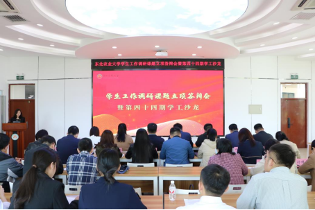 为深入落实学校党委高质量开展好主题教育工作要求,切实提高学生工作队伍的调查研究能力,深入了解大学生思想政治状况,通过调查研究聚焦真问题,下足真功夫,锻炼真本领5月9日上午,东北农业大学2023年学生工作调研课题立项答辩会暨第四十四期“学工沙龙”在食品实验楼315会议室举行。科技处处长寇胜利、学生工作部部长于兴业、马克思主义学院副院长赵继颖、学生工作部副部长宫建伟、刘双奇、招生就业处副处长李巍、校团委副书记焦文静以及各学院党委副书记担任立项答辩评委。答辩会由学生工作部副部长刘钊熠主持。