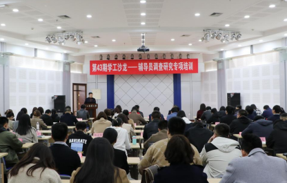 为认真落实学校党委关于深入开展学习贯彻习近平新时代中国特色社会主义思想主题教育工作实施方案要求,深入贯彻落实学校党委“学习培训年”“强化管理年”“工作落实年”活动部署,扎实开展“辅导员队伍建设年”,有效提升辅导员的调查研究能力,鼓励辅导员通过调研获得真知灼见、掌握真情实况、促进真抓实干,推动学校学生工作高质量发展。4月27日,我校举办第四十三期学工沙龙暨辅导员调查研究专题培训。