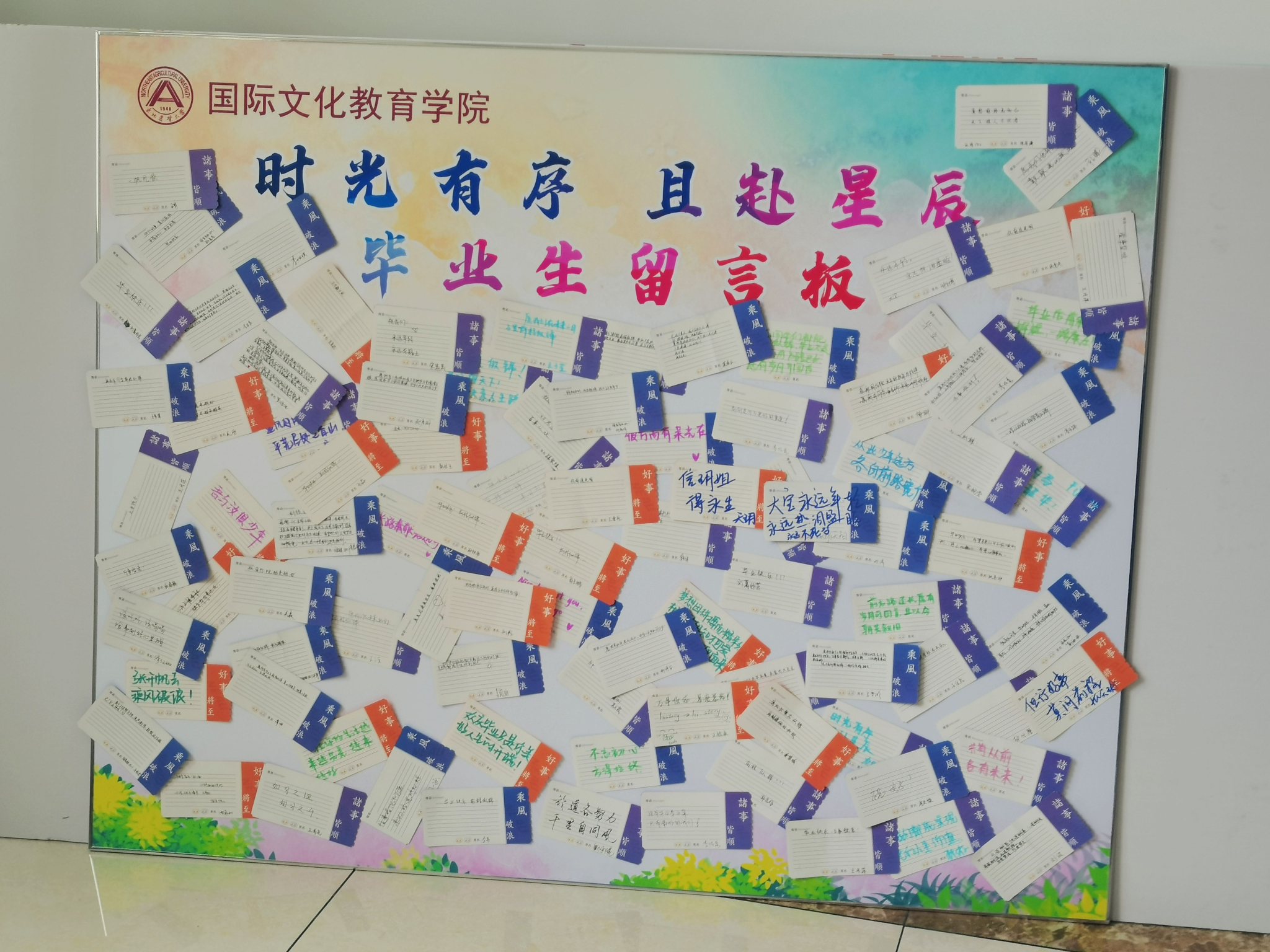 园艺园林学院举办了“青春本色,季忆留夏”毕业征集系列活动,面向全院毕业生征集珍藏于东农的美好回忆,共收集照片、寄语等100余份,其中既有对正处于人生最美阶段的学弟学妹们的万分祝福,也有对春风化雨的学院老师们的无限感激。生命科学学院以爱校荣校教育为抓手,打造“一信两卡”特色活动。辅导员为本硕博毕业生亲手写下500余封“亲笔信”,点点滴滴的回忆,细致入微的叮嘱,句句诚挚的祝福,表达了老师对学生的浓浓情意;发放毕业生心愿卡,设置心愿墙,让毕业生为老师、同窗、师弟师妹和未来的自己送上美好祝愿的同时,也为母校、学院发展建言献策。食品学院开展毕业年级同学最后一次感恩老师活动,毕业生最后一次与辅导员老师进行面对面倾谈,深切地表达了同学们四年里对于老师能够不断地引导与包容、理解与支持、鼓励与帮助的诚挚感恩与感谢之意。以“东农食品青媒”微信公众平台为媒介,开启毕业生建议征集活动,通过遴选毕业生评论,分类整理建议,规划可行性,以此进一步完善食品学院管理规划。经济管理学院开展“爱校铭于心·荣校践于行”主题年级大会以及毕业生主题专访活动与毕业季照片征集活动,辅导员带领毕业生们回顾了在东农校园四年学习生活的点点滴滴,分享了自己的大学生活和青春感悟,进一步增强了经管学子爱校荣校的责任意识。公共管理与法学院开展“惜别恩师,千言万语”活动,毕业生积极参加,通过写卡片、现场慰问、送寄语等形式,对大学期间的各位老师表达浓厚的感恩之情。通过今日校园和邮箱等形式征集毕业生的各类诉求,了解学生对学院的意见和建议,为学院发展和专业建设献计献策。国际文化教育学院发起最后一次感恩老师倡议,与学院领导、教师、辅导员合影留念,再次感悟校院培育之恩,惜别师生情谊。制作“时光有序,且赴星辰”毕业生留言板,为毕业生对母校、学院建言献策搭建桥梁,毕业生纷纷发表个人感受和对校院发展的意见建议。