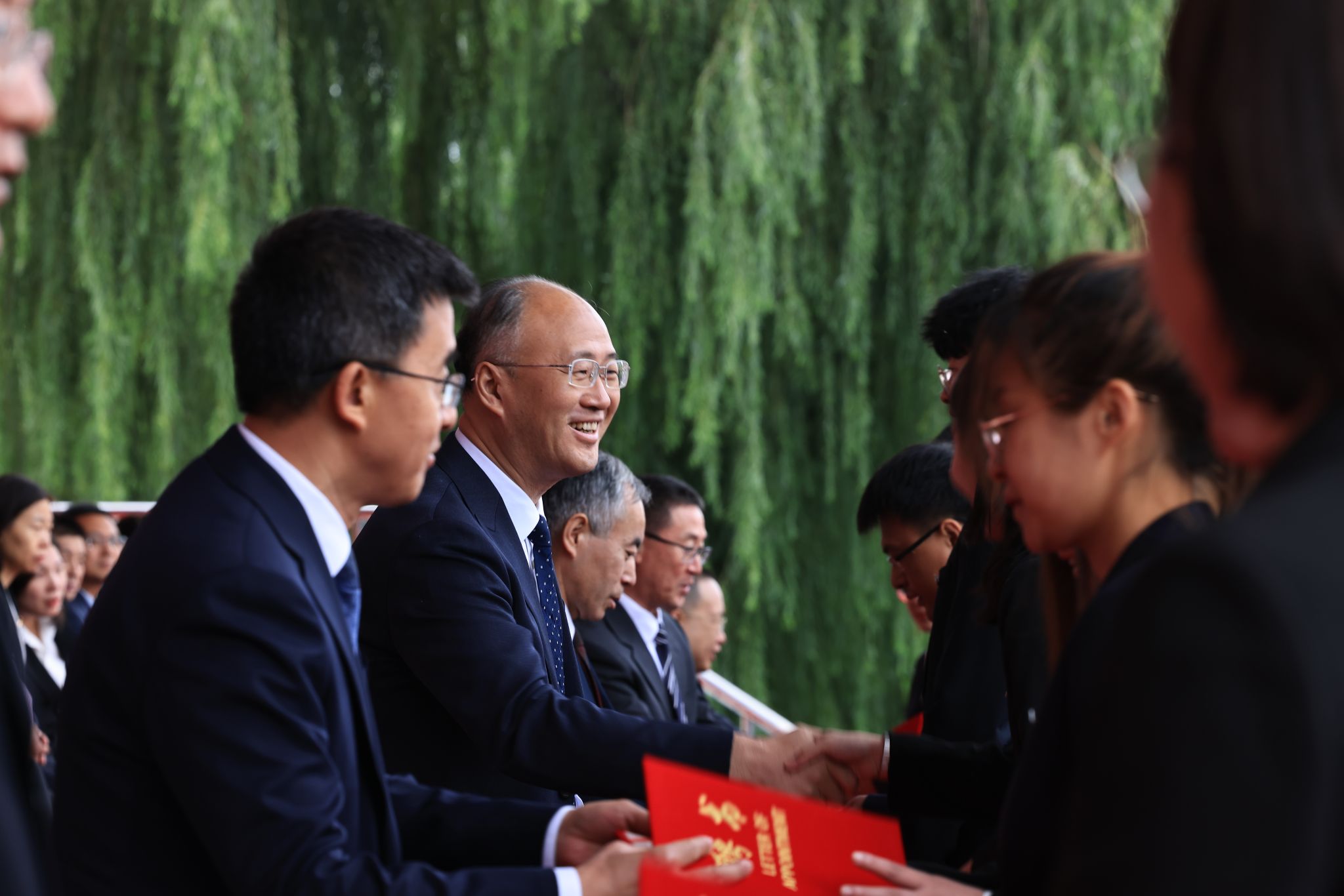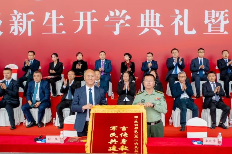 校党委书记、校长付强,党委副书记贺景平,副校长孙占峰、刘竹青、刘忠华,统战部部长、省绿色食品科学研究院党委书记、院长高放,军训承训部队部队长金兆华大校出席大会。各学院、部、处、办及直属单位领导,新生班主任、新生辅导员、承训部队全体教官与全体2024级新生参加大会,学生家长通过在线直播的方式观看典礼,大会由贺景平主持。