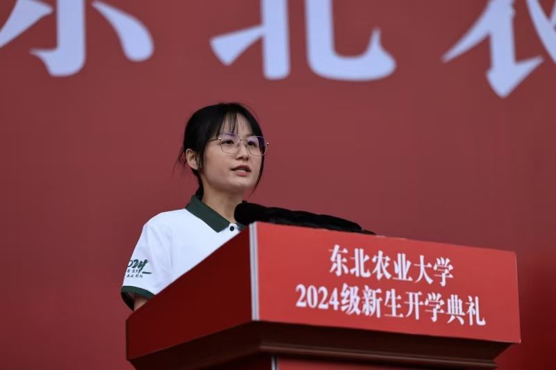 “我宣誓:作为东北农业大学的一名学生,我将秉承‘博学笃行、明德亲民’的东农校训,传承‘艰苦奋斗,自强不息’的东农精神,厚植爱农情怀,练就兴农本领……”典礼上进行了新生入学宣誓仪式,誓言铿锵,彰显着奋进的不懈追求。