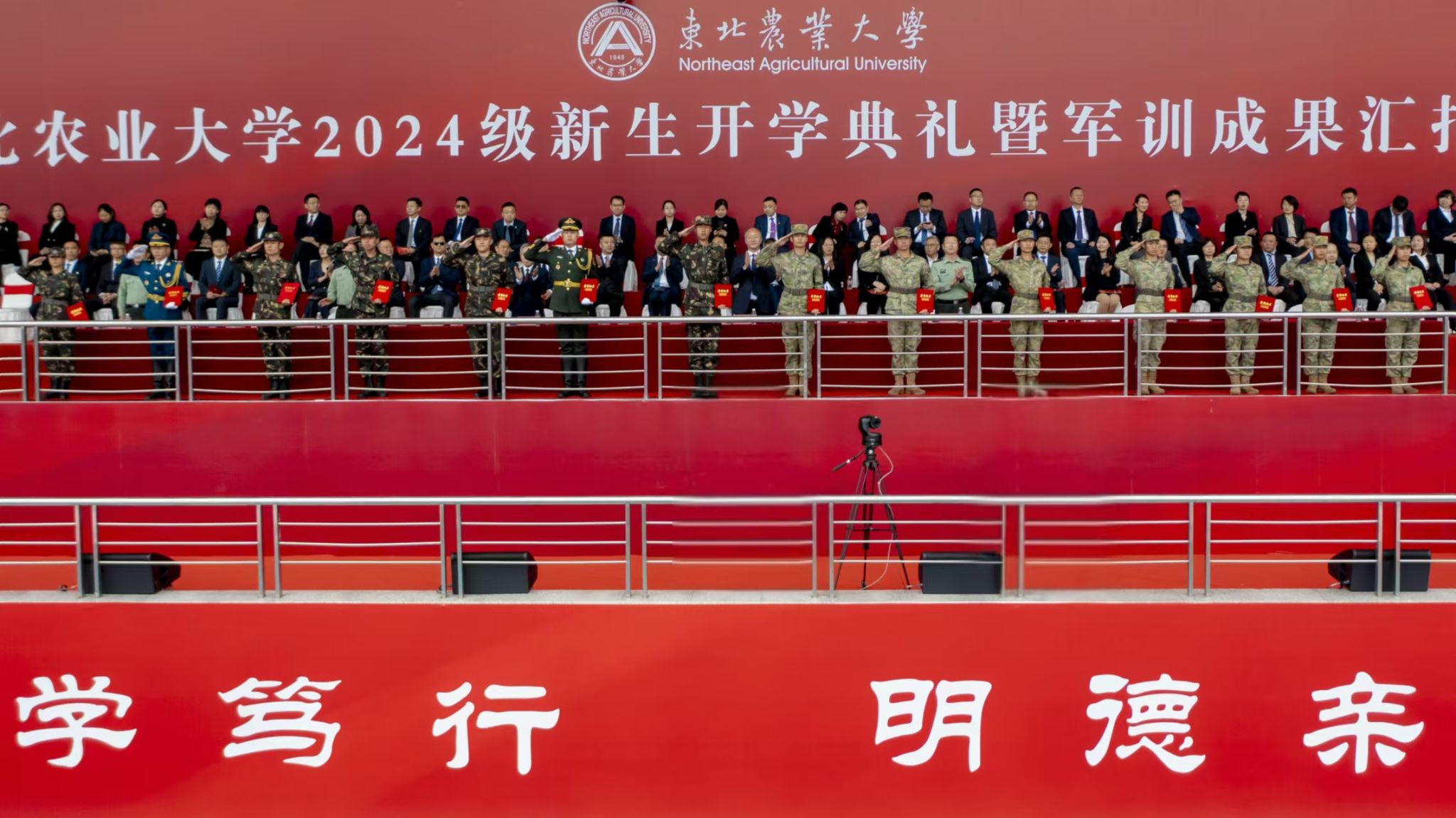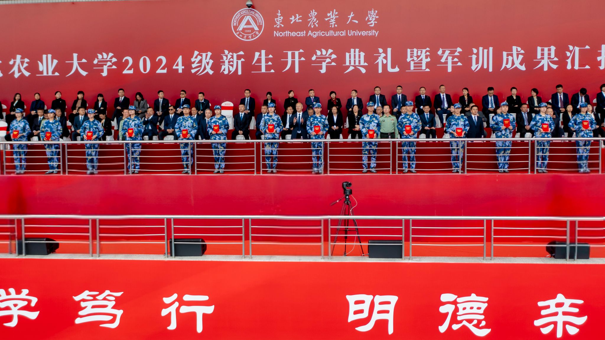 伴随着诗歌朗诵《东北农大》,开学典礼继续进行。