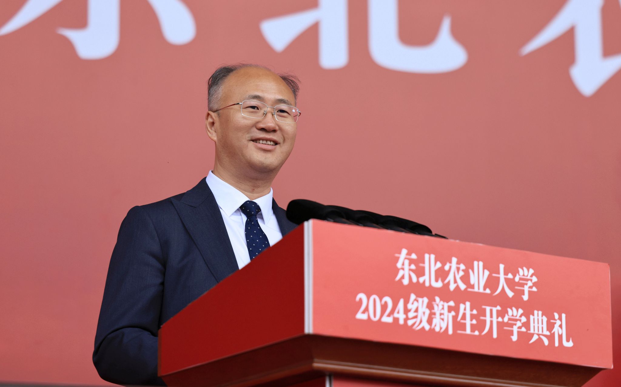 付强代表全体师生员工和社会各界东农校友,向所有2024级新同学表示最热烈的欢迎,以《踏上人生新征程,开启奋斗新篇章》为题,为全体新生讲授“开学第一课”。