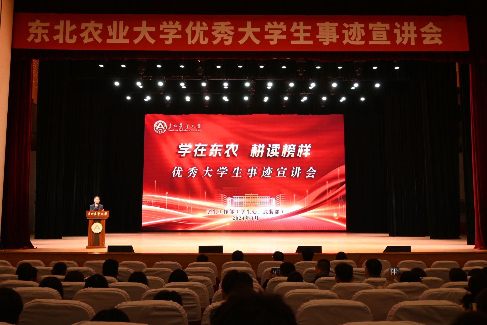 为充分发挥学生榜样的示范引领作用,激励全体学生努力成长为全面发展的知农爱农新型人才,4月25日学生工作部、校团委在音乐厅召开“学在东农 耕读榜样”优秀大学生事迹宣讲会。校党委副书记王泽方、学生工作部、校团委相关同志以及700余名辅导员和学生代表参与活动,3000余名学生观看现场直播,宣讲会由食品学院辅导员任萌主持。