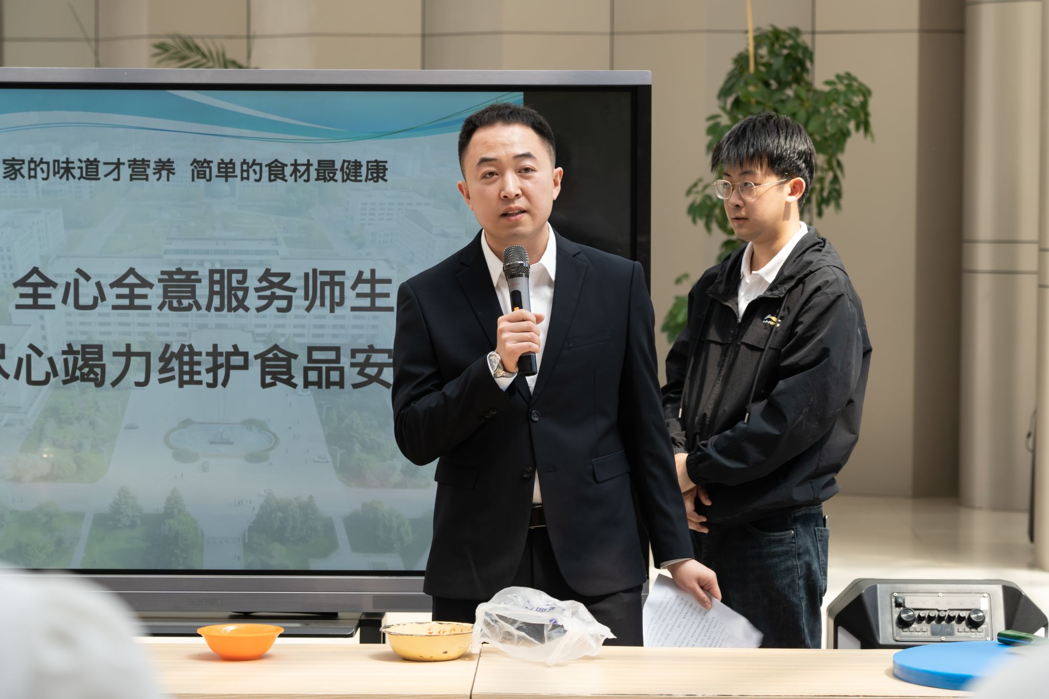 为进一步拓宽劳动教育实践载体,丰富劳动实践形式,提升学生劳动实践能力,培养健康饮食习惯,按照2024年大学生“劳动教育月”活动安排,5月16日,学生工作部联合后勤管理处,组织开展了厨艺烹饪劳动实践课。学生工作部部长于兴业、副部长刘双奇,后勤管理处副处长谭留兵、饮食服务中心主任王功臣到现场观摩授课。