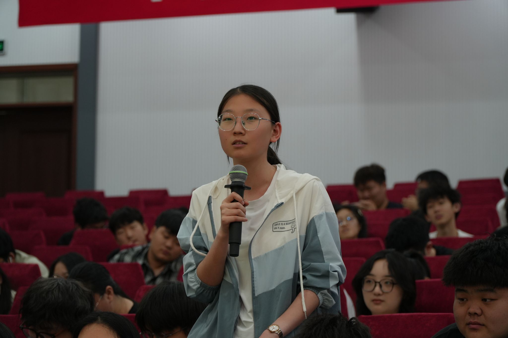 在互动环节,殷学中结合自身成长经历和创业经验,对现场学生的提问做出精彩回答。他提出以创新为导向、以思考为根基的发展思路,鼓励大家不断强化学习能力和实干本领,在劳动中锤炼技能,在实践中寻求突破。