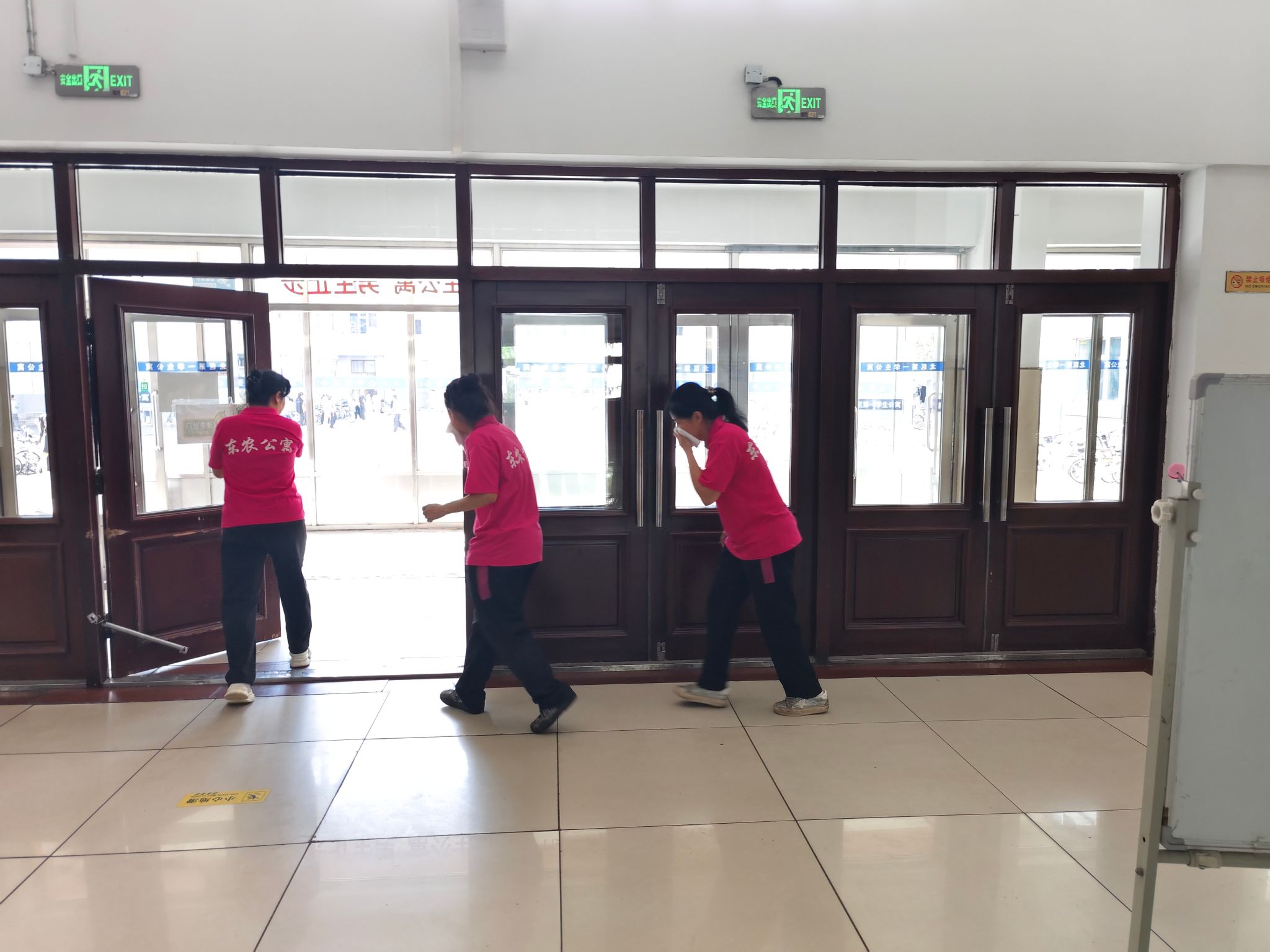 随着消防警报声的响起,消防疏散逃生演练正式启动。各学生公寓门卫第一时间一键开启所有安全逃生出口,住宿学生在各公寓工作人员的引导下有序、迅速地疏散至各公寓楼指定的室外安全集合地点。