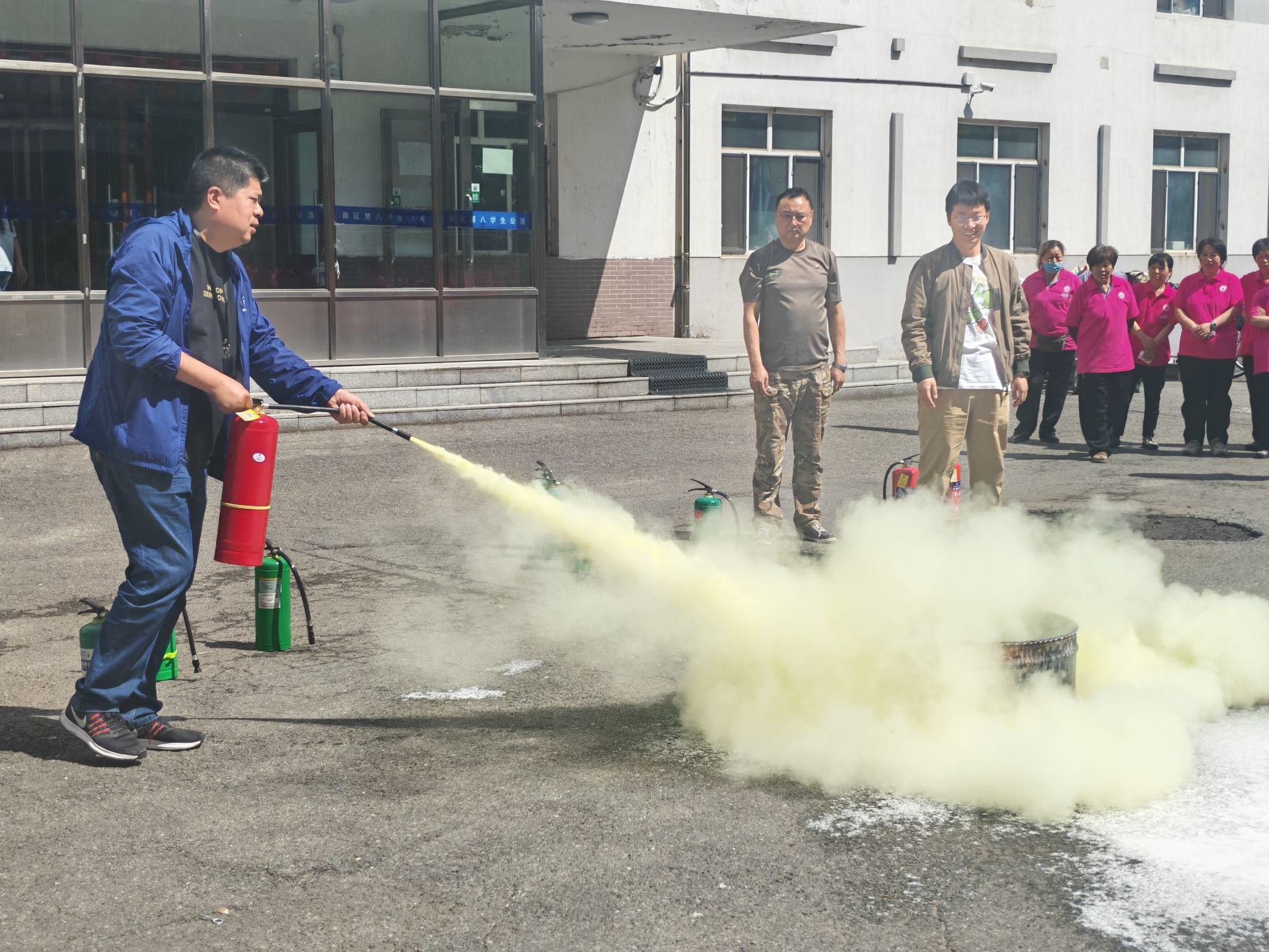 工作人员现场设置了模拟火源,并分别使用干粉灭火器及水基灭火器进行了灭火操作示范。在工作人员指导下,学生及公寓工作人员进行了使用灭火器及连接消防水带的实际操作。