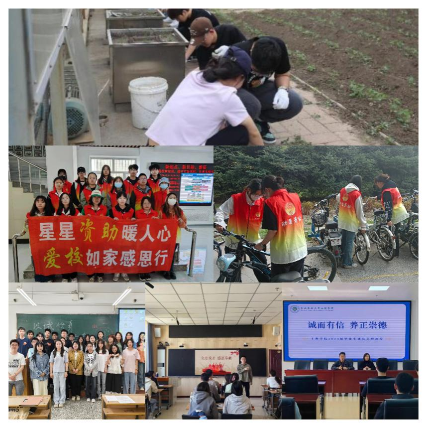 各学院高度重视,积极开展特色资助育人活动。生命科学学院、经济管理学院、园艺园林学院将学生资助工作与思想政治工作紧密结合,发挥朋辈榜样的引领作用,举办优秀学生事迹宣讲会,邀请国家励志奖学金获得者讲述成长奋斗故事,充分发挥受助学生榜样传播与励志引领作用。资源与环境学院、艺术学院、国际文化教育学院采取学生喜闻乐见的方式,开展“资助助我圆梦,我为资助代言—学生资助宣传大使”选拔、“反诈防骗 青春同行”主题海报设计大赛、“防范于心,反诈于行”主题设计大赛等资助育人活动,提升资助政策宣传实效。动物医学学院、水利与土木工程学院对全体受资助学生加强感恩励志教育,开展“爱校如家,三化校园”公益劳动,常态化践行感恩教育,增强受资助学生爱校荣校意识。电气与信息学院、公共管理与法学院、文理学院以学生毕业教育为契机,开展毕业生诚信教育主题班会,为毕业生及国家助学贷款办理学生进行专题培训。植物保护学院、马克思主义学院、工程学院举办“诚铸青春,信远未来”征信知识竞赛、诚信教育”主题征文、“反诈防骗,青春同行”主题演讲比赛、“立志成才,感恩奉献”主题学习班会,将资助教育、诚信教育和反诈骗教育等融合在一起,大力提升学生感恩意识、征信意识、金融意识、法律意识。食品学院、农学院举办爱心赠书活动,号召全体毕业生进行书籍捐赠,帮助有需要的低年级家庭经济困难学生,书籍传递的温暖被具象化,传递知识和爱的火炬。