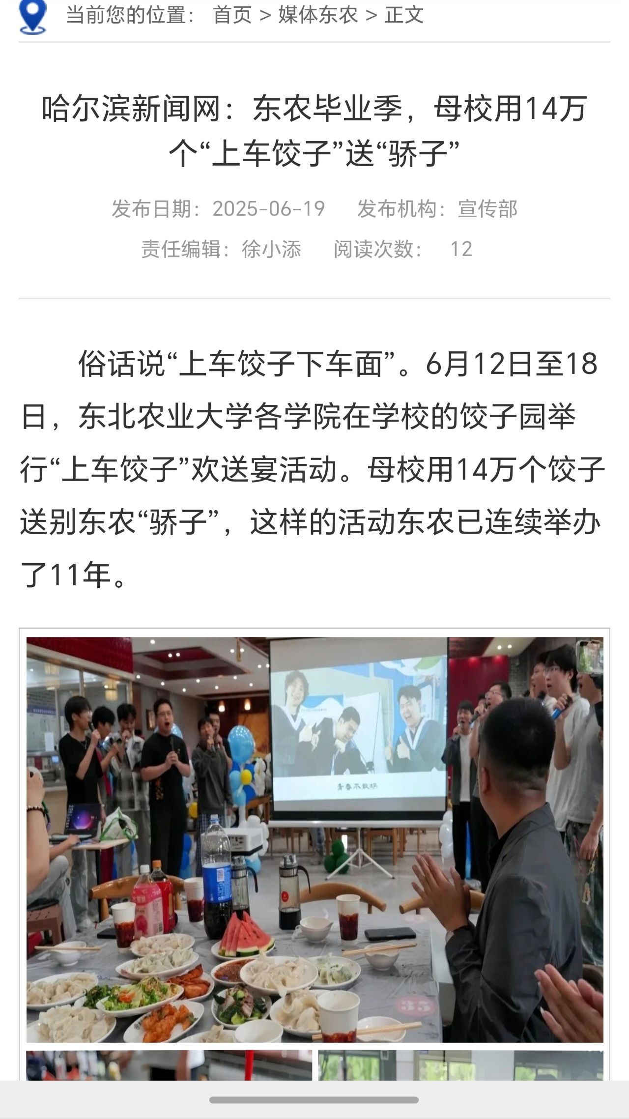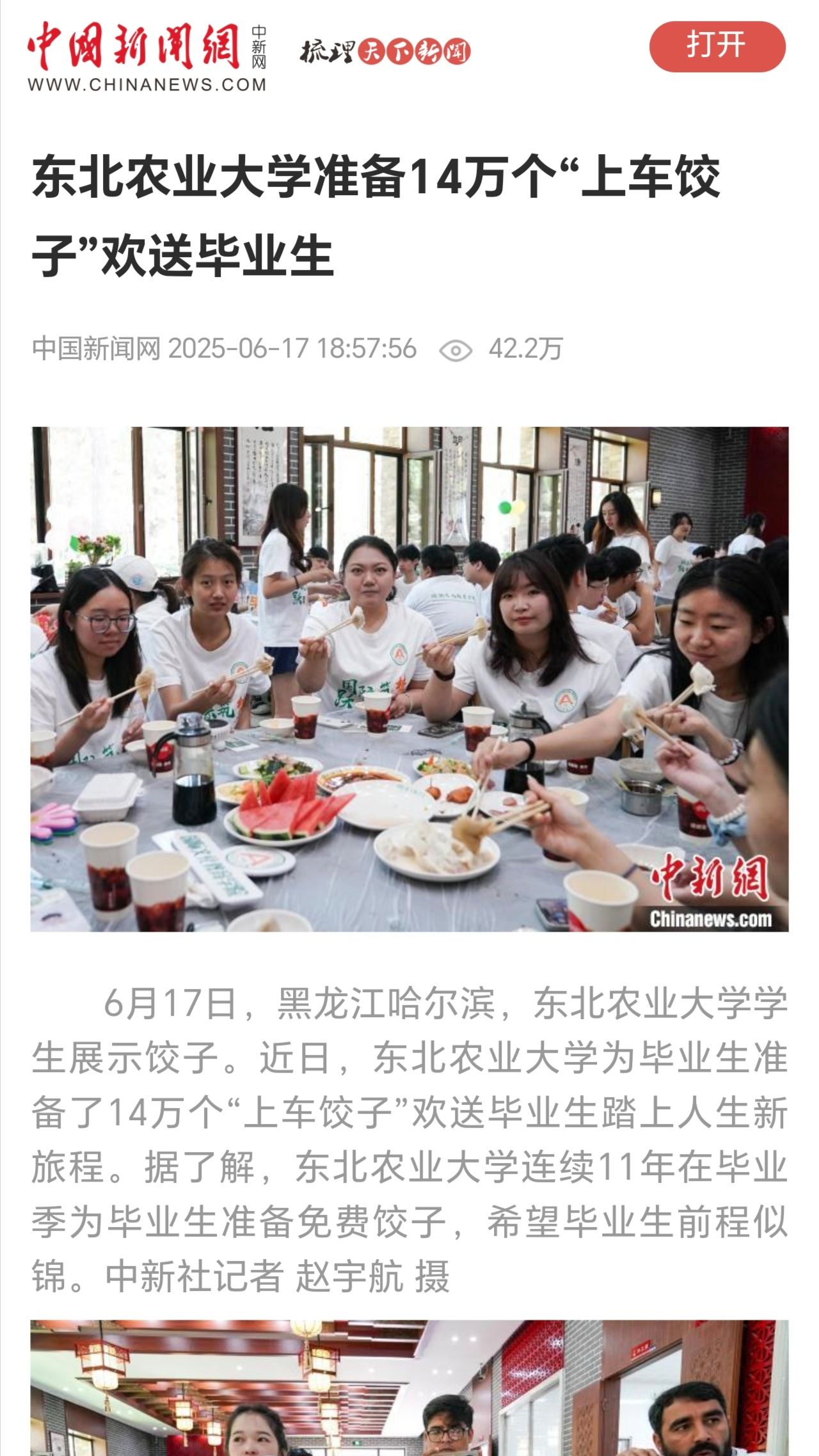 每年毕业季,东农学子都带着这份热腾腾的祝福奔赴祖国大江南北,成为乡村振兴田野上的新锐力量,用所学知识浇灌希望的土地,成为科研创新前沿的先锋战士,以智慧和勇气探索未知的边界,成为城市建设的中流砥柱。“上车饺子” 已成为东农毕业生与母校之间重要的情感纽带,更成为镌刻在青春记忆里永不褪色的温暖印记。那一个个饱满的饺子,包裹着母校的牵挂与期许,在学子们启程的瞬间,化作前行的动力,陪伴他们走过岁岁年年,无论身在何方,这份温暖始终如影随形。