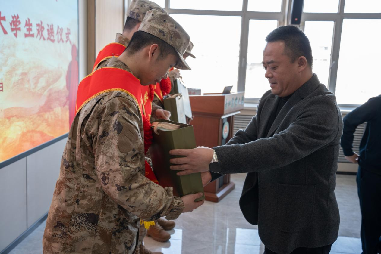 汪志君在倾听了退伍老兵们的退伍返校感受,了解他们的蜕变与成长,并对新兵们选择参军入伍,献身国防,表达了由衷的敬佩和祝福,同时对新兵们提出几点要求:一是筑牢信仰根基,传承红色血脉。要认真学习贯彻习近平强军思想,锤炼政治品格,把革命先辈的优良传统传承下去,努力做“有灵魂、有本事、有血性、有品德”的新时代革命军人。二是练就过硬本领,勇当强军先锋。坚定“千磨万击还坚劲”的毅力,苦练军事技能;时刻保持“本领恐慌”的危机感,深入钻研现代军事技能。牢记““艰苦奋斗,自强不息”的东农精神,在摸爬滚打中坚强自己的意志,在解决难题中提高自身的本领。三是以榜样为引领,在军营建功立业。希望入伍学生以我校优秀参军学子为榜样,用实际行动和责任担当展现新时代军人风采,在科技强军中建功立业。四是牢记师长重托,情系母校家乡。厚植家国情怀,努力争创佳绩,用优异的成绩给母校增光,给家乡添彩,在国家最需要的地方书写属于自己的青春故事。