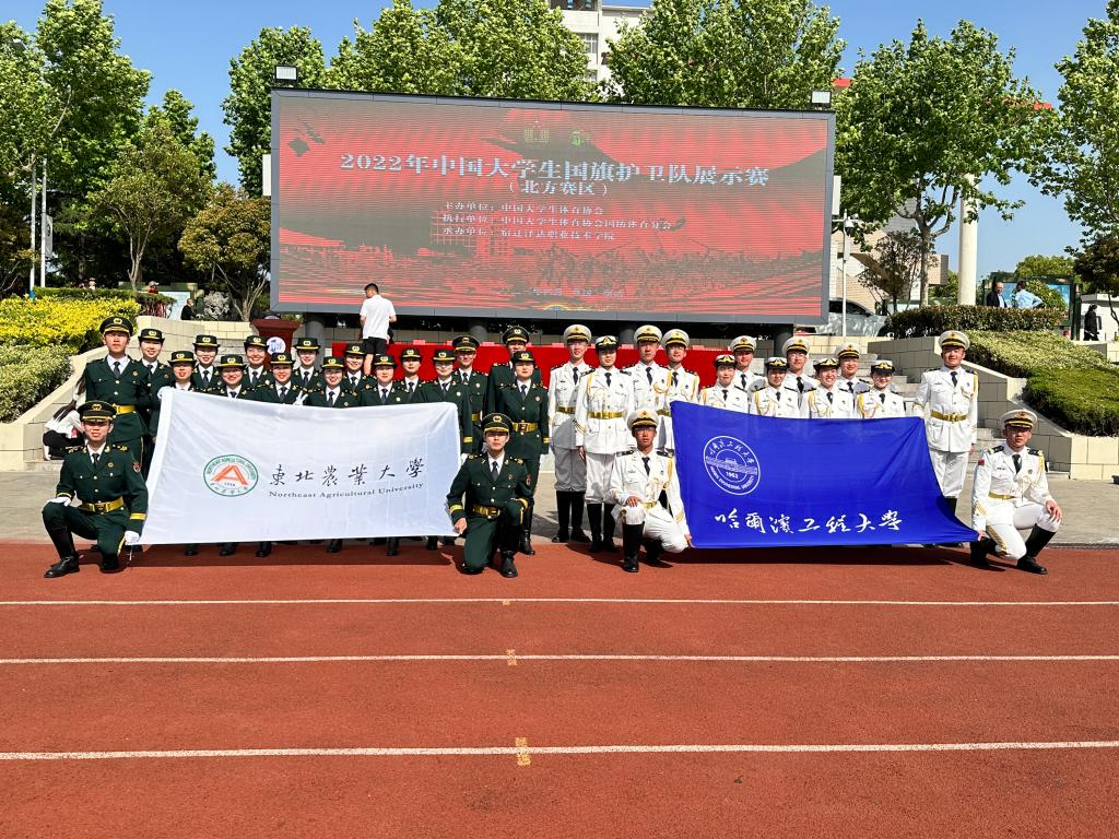 4月26日至5月1日,由中国大学生体育协会国防体育分会主办的2022年中国大学生国旗护卫队展示赛(北方赛区)在江苏省宿迁市成功举行。由学校武装部副部长刘双奇领队,军事理论教研室主任姚忠保担任教练员,18名同学组成代表队的东北农业大学大学生国旗护卫队与来自北京航空航天大学、南开大学、中国地质大学、陕西师范大学、南京师范大学等8个省份22支高校代表队进行激烈角逐,东北农业大学代表队的升降旗展示和队列展示两个科目全部晋级全国总决赛,三名同学获得体育道德风尚奖,综合成绩位列北方赛区第七名,成功晋级总决赛。