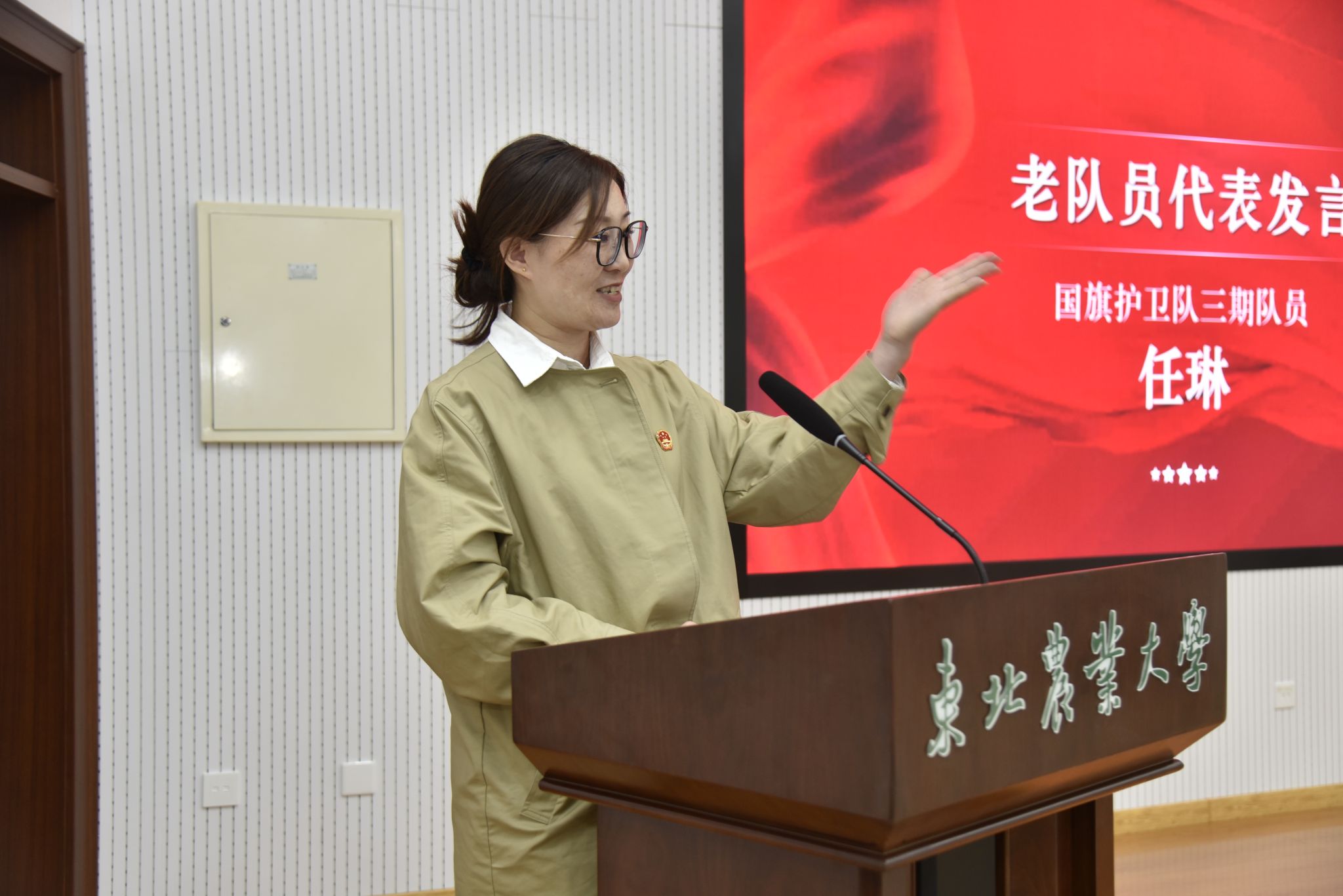 国旗护卫队第三期队员任琳同志在发言中表示,从前辈手中接过这份责任,又将它传递给后来的战友。新队员在训练中磨砺自己,在升旗时展现风采,传承着这份神圣的使命,这不仅是一份荣誉的传承,更是一种精神的延续!