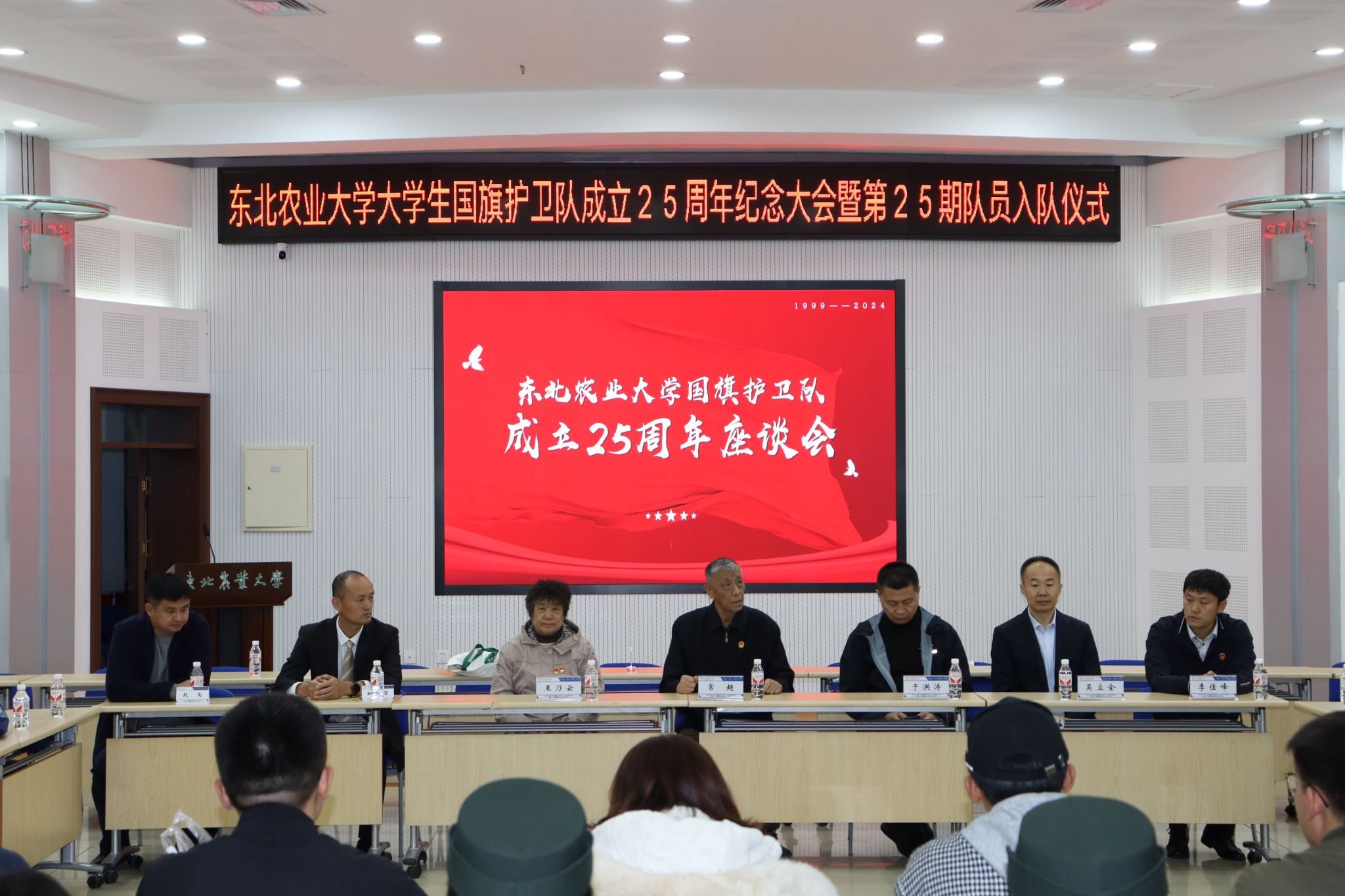 10月1日上午,东北农业大学大学生国旗护卫队成立25周年纪念大会暨第25期队员入队仪式在图书馆227会议室隆重召开。校党委副书记贺景平出席会议并讲话,校友工作办公室主任车可舒、农学院党委书记李晓书、校武装部全体教工,以及大学生国旗护卫队历届50余位校友参加大会。活动由学生工作部(武装部)部长于兴业主持。