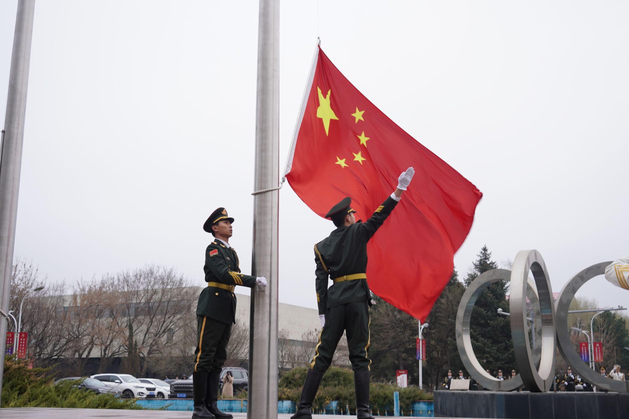 升旗仪式在庄严的国歌声中拉开帷幕,国旗护卫队坚定有力的步伐响彻广场,全体师生庄严肃立,目送鲜艳的五星红旗缓缓升起。