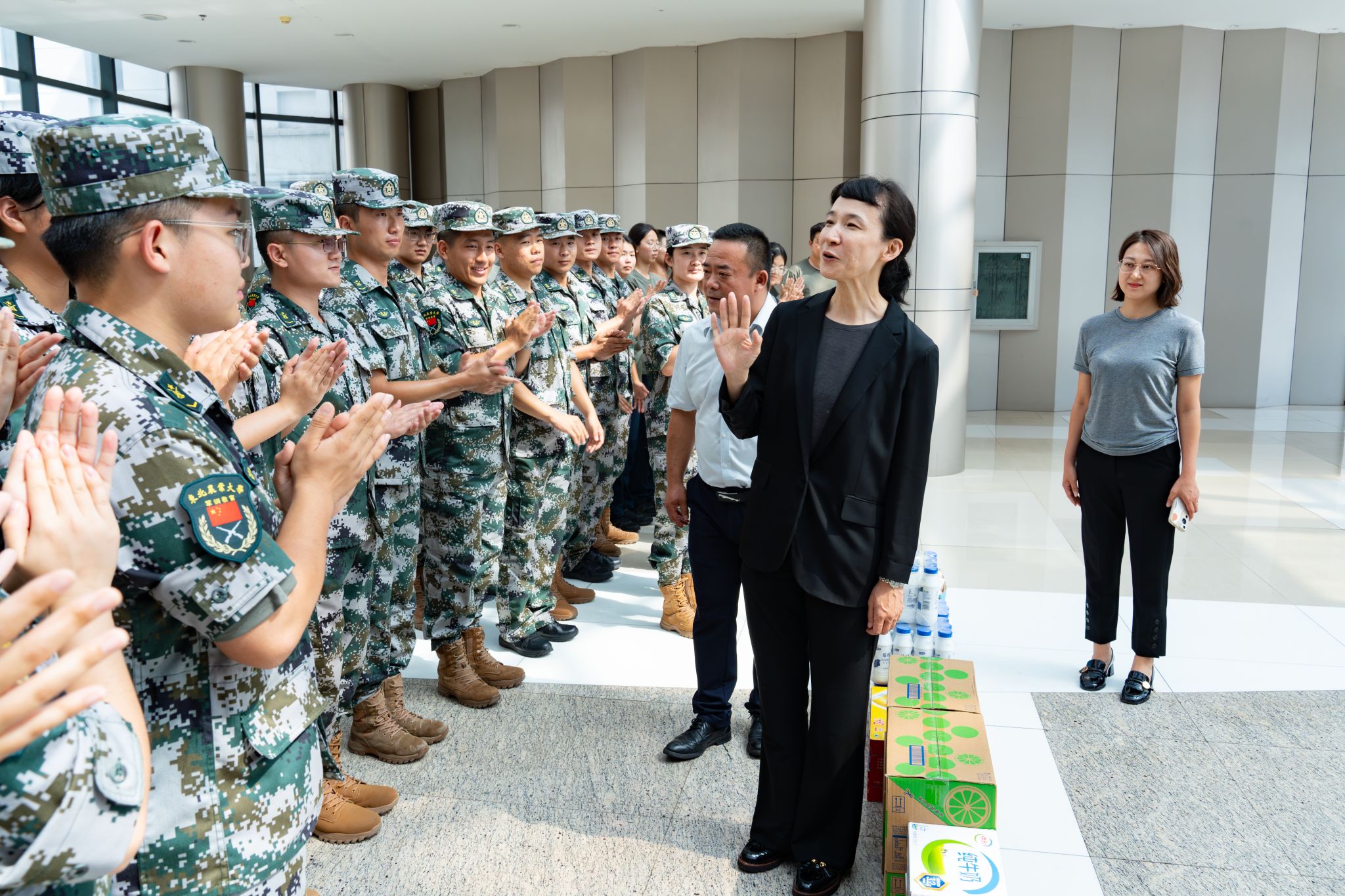 教官代表对校领导的慰问表示衷心感谢,一致表示,全体教官将不负学校的信任与期望,始终以高标准、严要求、重关爱的原则精准施训,把过硬的军事技能与优良的部队作风传递给新同学,确保圆满完成此次军训任务,助力新一批东农学子以良好的精神状态开启大学生涯。