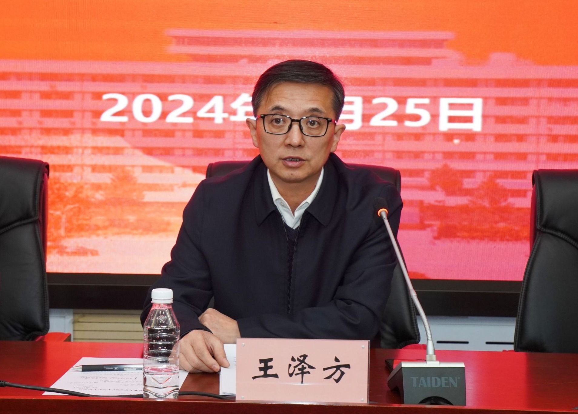 王泽方就当前学生思想政治教育工作面临的新形势、新挑战指出了学生工作存在的差距与不足,对做好2024年学生工作提出三点要求。一是要富有工作热情,不断提升学生思政工作温度。学生工作各部门、各学院要关心学生工作者的职业发展,激励学生工作者全身心投入到学生工作中,开展好以学习为中心的学生教育管理工作,培养更多德智体美劳全面发展的高质量学生。二是要明确工作目标,不断提升学生思政工作深度。学生工作要服务于学校高质量人才培养,持之以恒抓好学生党建工作、学生就业工作和特殊群体学生工作,在创新思政工作理念、内容、方法的基础上,贴近学生思想实际、贴近学生生活实际、贴近学生成长成才。三是要扛起工作职责,不断提升学生思政工作力度。学生思政工作者要切实肩负起对学生政治上的正确引导、思想上的守正引领、学习上的精准辅导、情感上的施爱疏导、行为上的躬身教导、就业上的规划指导。守牢学生安全底线、意识形态红线、学生心理健康生命线和廉洁自律防线。