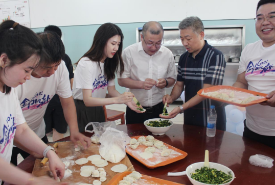 电气与信息学院的“凤凰花开,骊歌响起”2023届毕业生上车饺子欢送会上,学院党委书记万庆生带领学院近300名师生一同包“上车饺子”,一张张面皮饱含了学院对毕业生浓浓的不舍与留恋,大家将离别的祝福包进每一只饺子里,欢送“毕业骄子”。