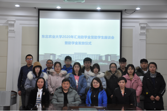 12月9日下午,2020年汇龙助学金座谈会暨助学金发放仪式在主楼610会议室举行,汇龙集团董事长单勇、集团财务总监宋伟、行政经理杨瑜博,我校学生工作部副部长崔丽及12名受助学生参加了活动,仪式由学生资助科科长王富林主持。