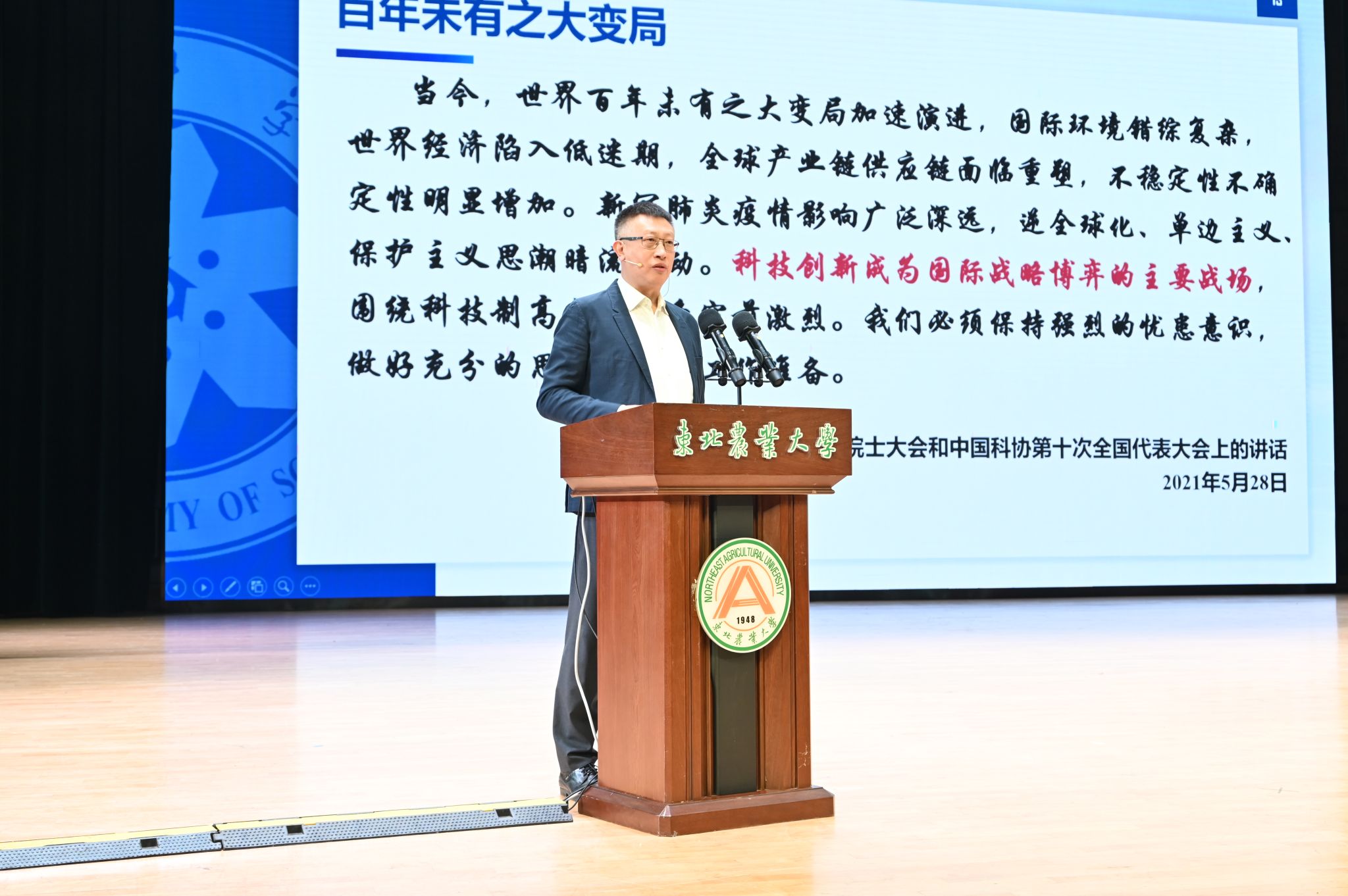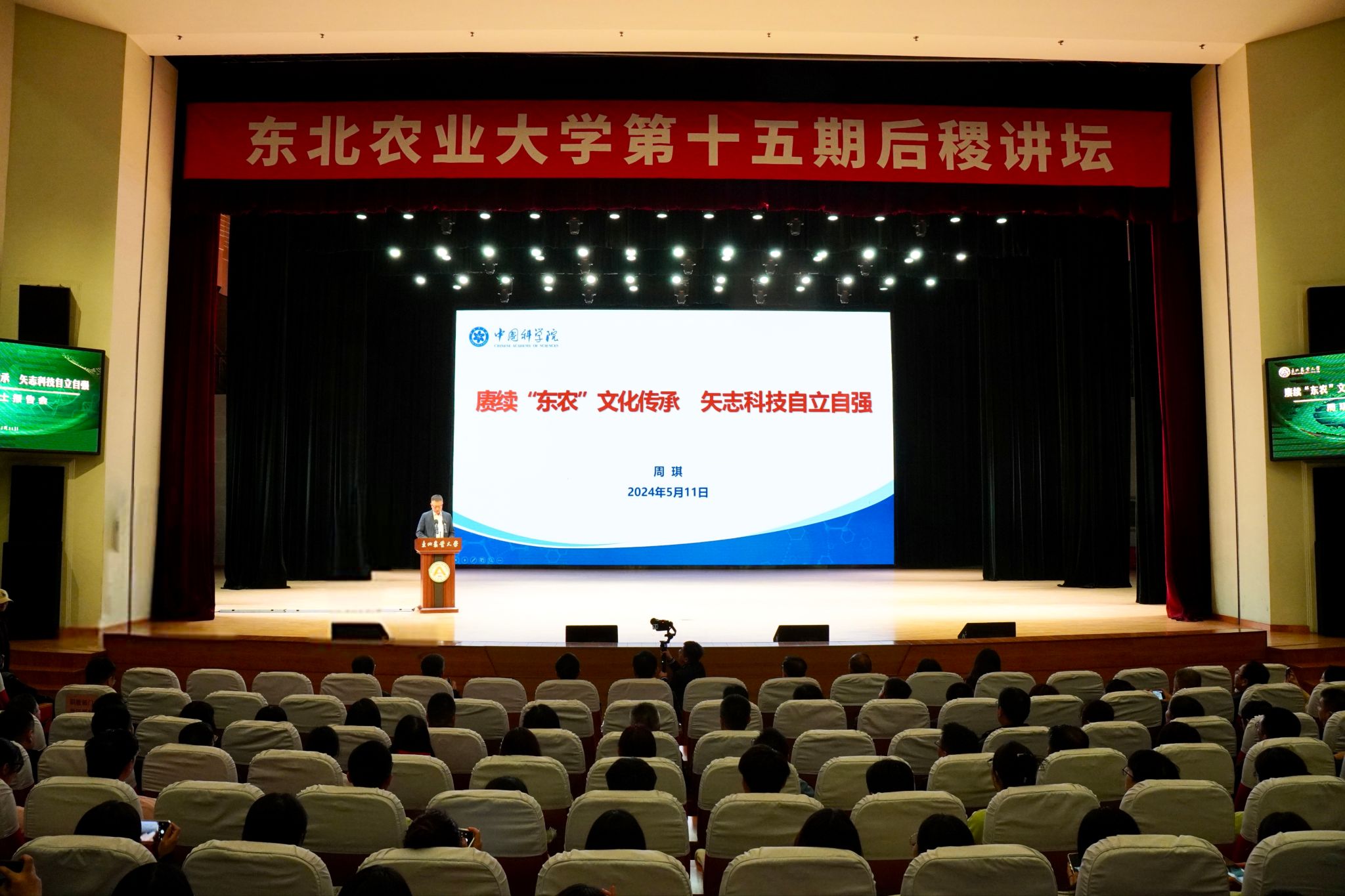 5月11日,东北农业大学第十五期“后稷讲坛”在学校音乐厅举行,讲坛邀请中国科学院院士,发展中国家科学院院士,中国科学院副院长、党组成员,中国科学院大学党委书记、校长,学校杰出校友周琪作了题为《赓续“东农”文化传承,矢志科技自立自强》的专题报告。报告会由校党委书记李长生主持。