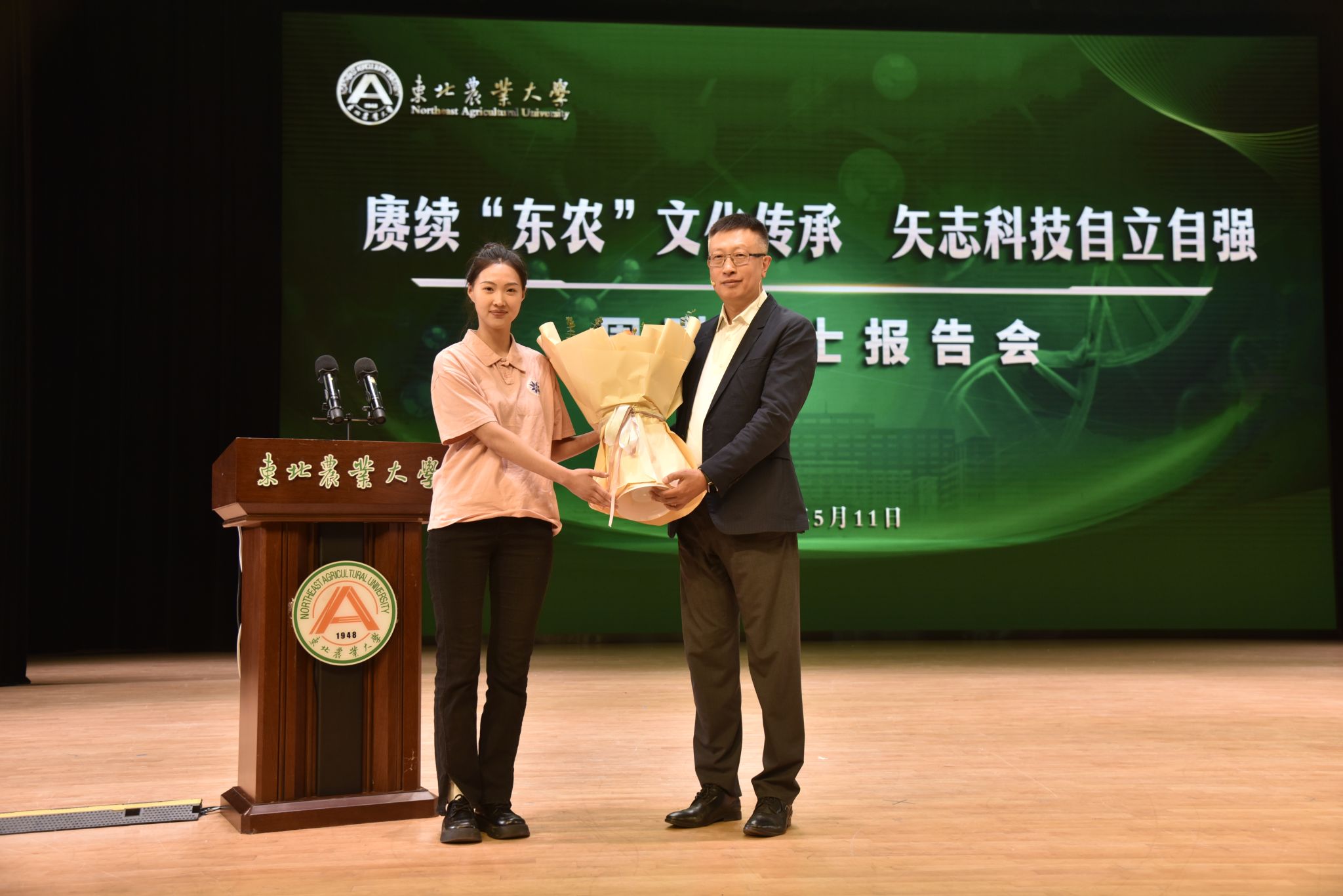 周琪随后分享了自己在东农成长和学习的难忘经历,他动情地讲述了对许振英、骆承庠和秦鹏春等东农老先生们的怀念和敬意,特别是那些启迪他科学梦想的东农岁月、那份难以割舍的母校情怀触动着在场师生,他始终以东农为傲、努力为东农增荣的信念深深鼓舞着每一位青年学子,赢得了大家热烈而持久的掌声。他期望广大师生努力做好一件事,就是要坚定科研自信、文化自信、东农自信,撸起袖子加油干,努力让学校变得更好。