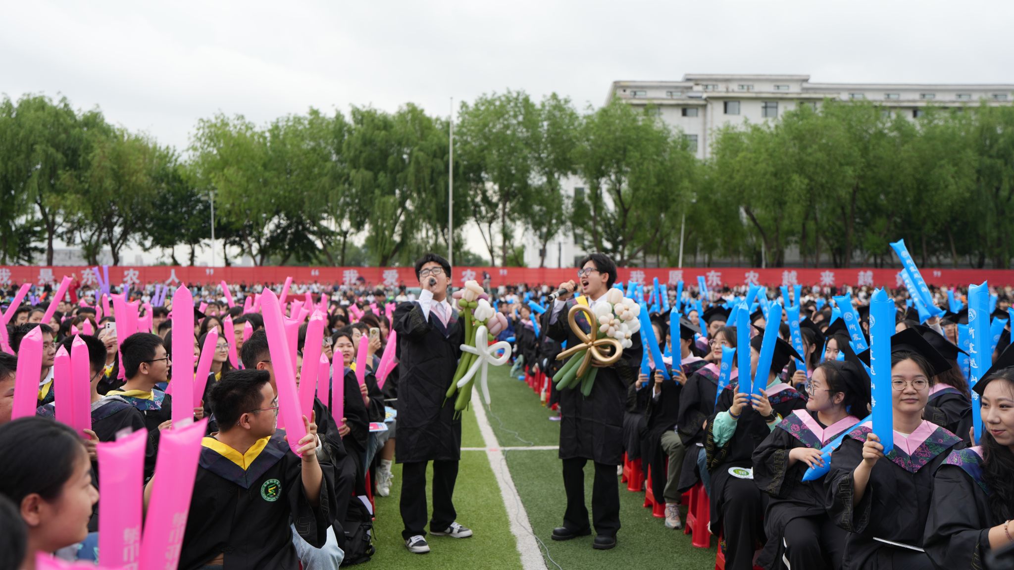 典礼上,25名毕业生代表向一线教师、导师、辅导员和后勤、保卫、机关、图书馆职工代表献花,感谢他们的辛勤指引、陪伴呵护。