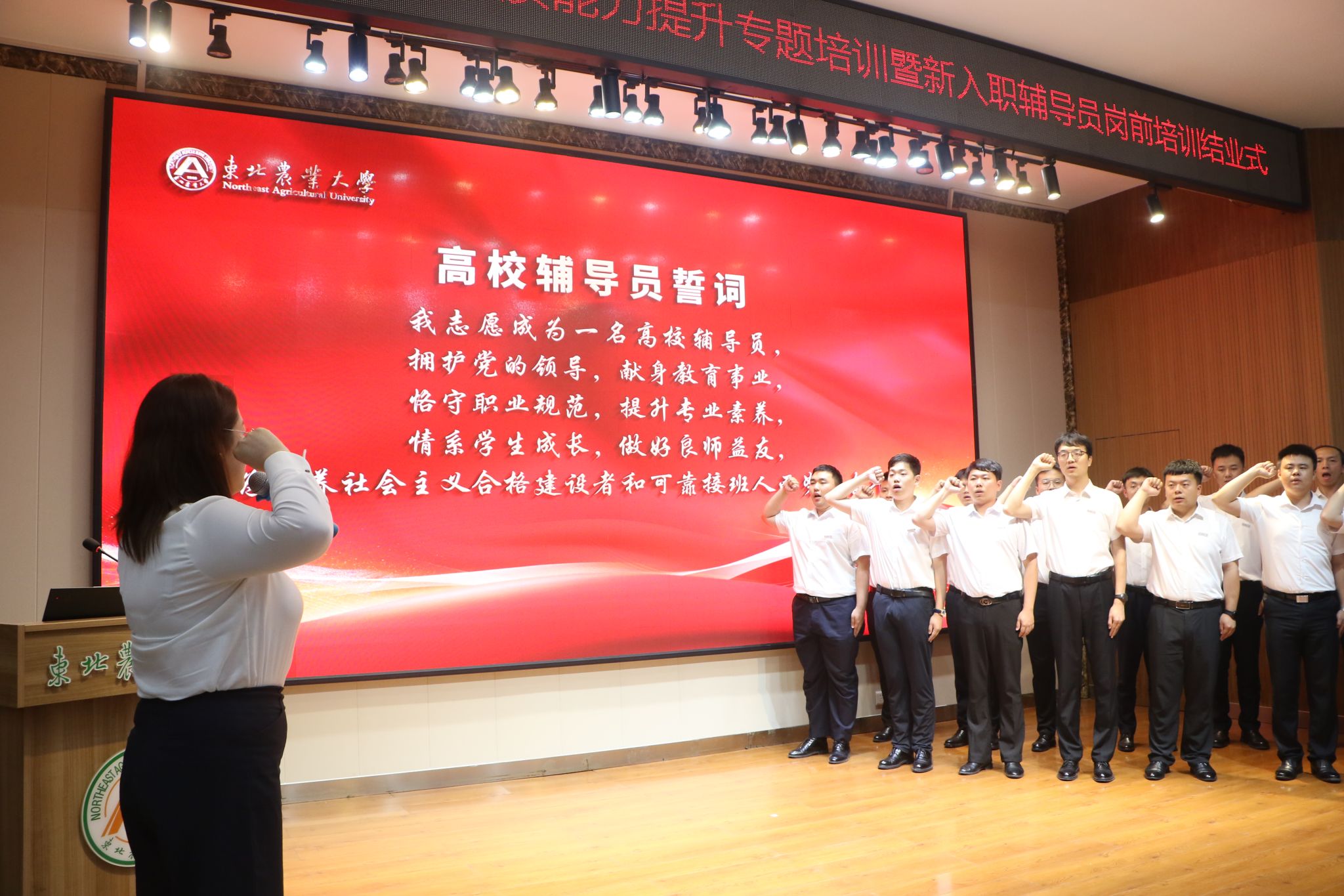 东农印记,誓言铿锵。各学院党委副书记担任“朋辈导师”,郑重为新入职辅导员佩戴校徽。“我志愿成为一名高校辅导员,拥护党的领导,献身教育事业……”全体新入职辅导员肃立,高举右拳,铿锵誓言是青春的承诺,更是对育人事业的无限忠诚与热爱。