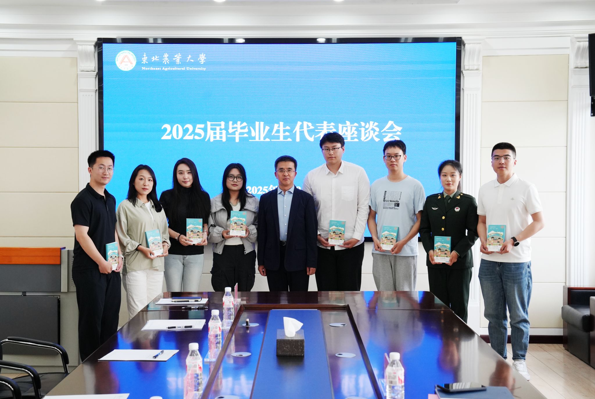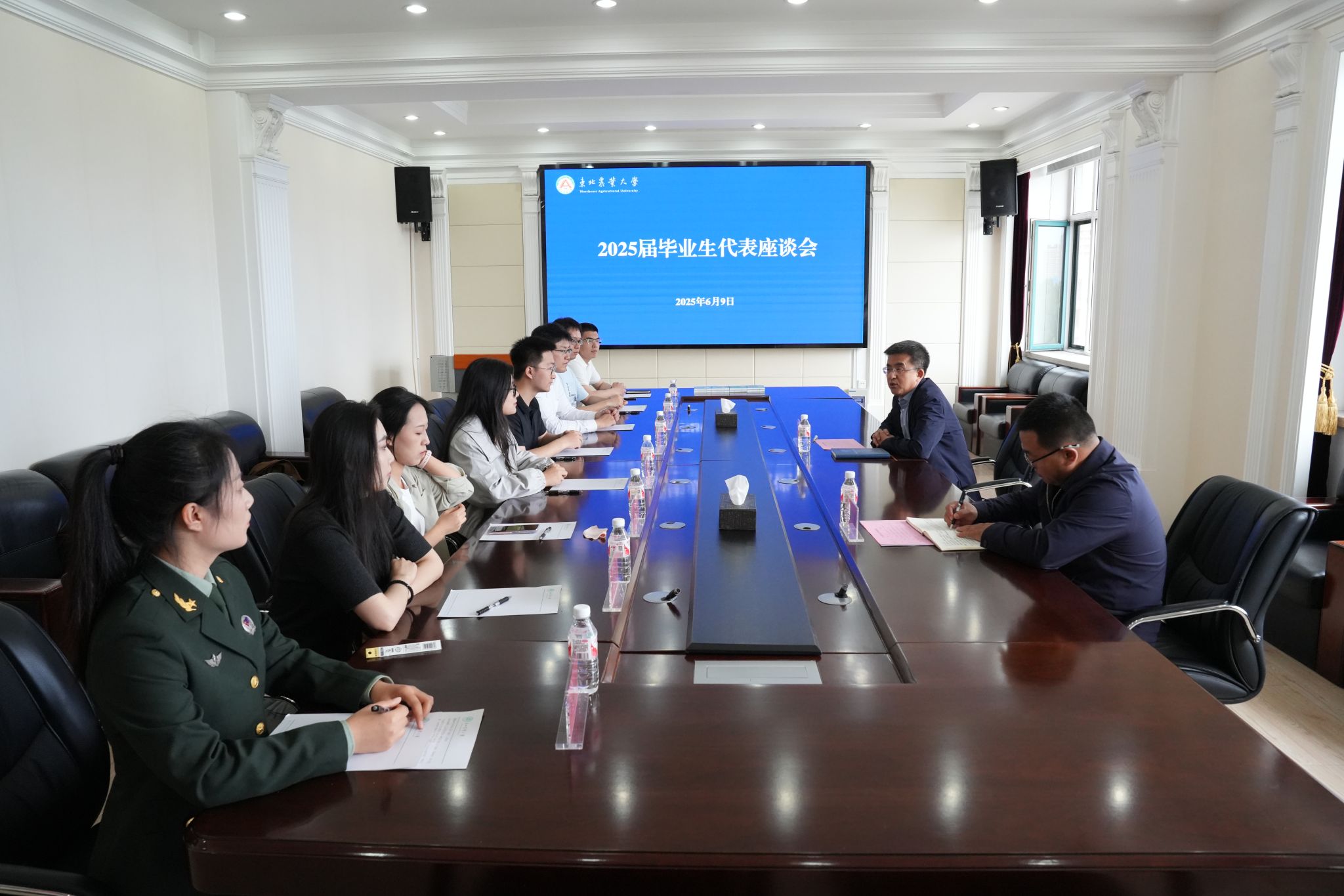 6月9日,东北农业大学2025届毕业生代表座谈会在主楼610会议室举行。校长刘竹青与来自7个学院的8名2025届毕业生代表亲切交流,共同回顾难忘的求学经历,对母校的深厚情感以及对未来的憧憬规划。