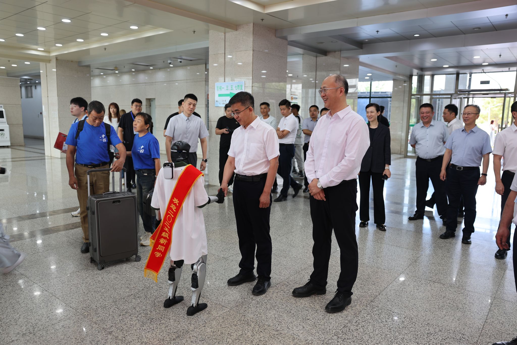 “我是东东,欢迎你来到东北农业大学”,这是今年迎新工作组的新成员——人形机器人东东对新生们说出的欢迎语。在成栋楼大厅,机器狗和两台人形机器人吸引了新生和家长们的目光,它们由我校电气与信息学院技术团队参与技术合作支持,能够完成行走、握手、敬礼等拟人动作并进行语音播报。校领导详细了解了技术团队的发展现状与机器人的应用场景,期待未来取得新的突破。