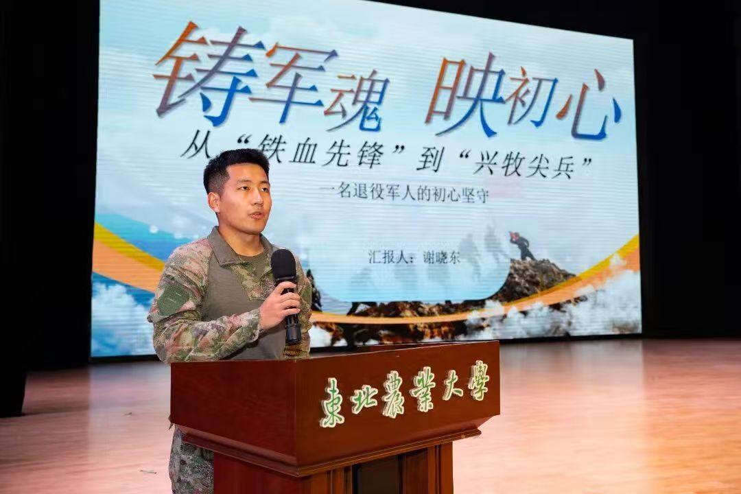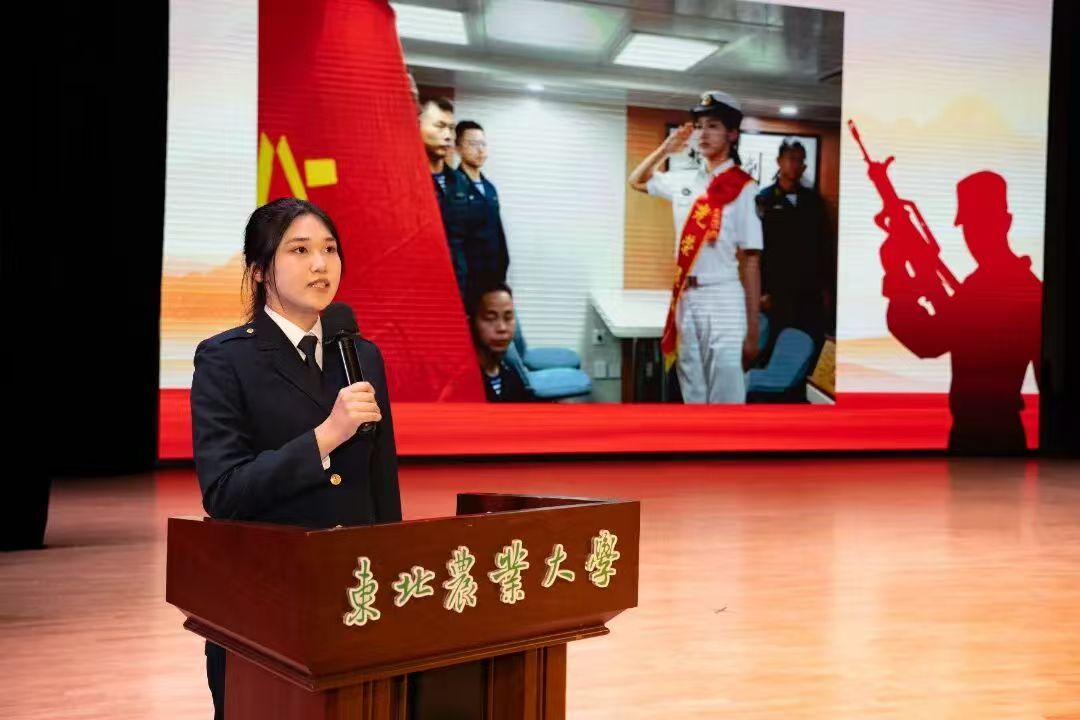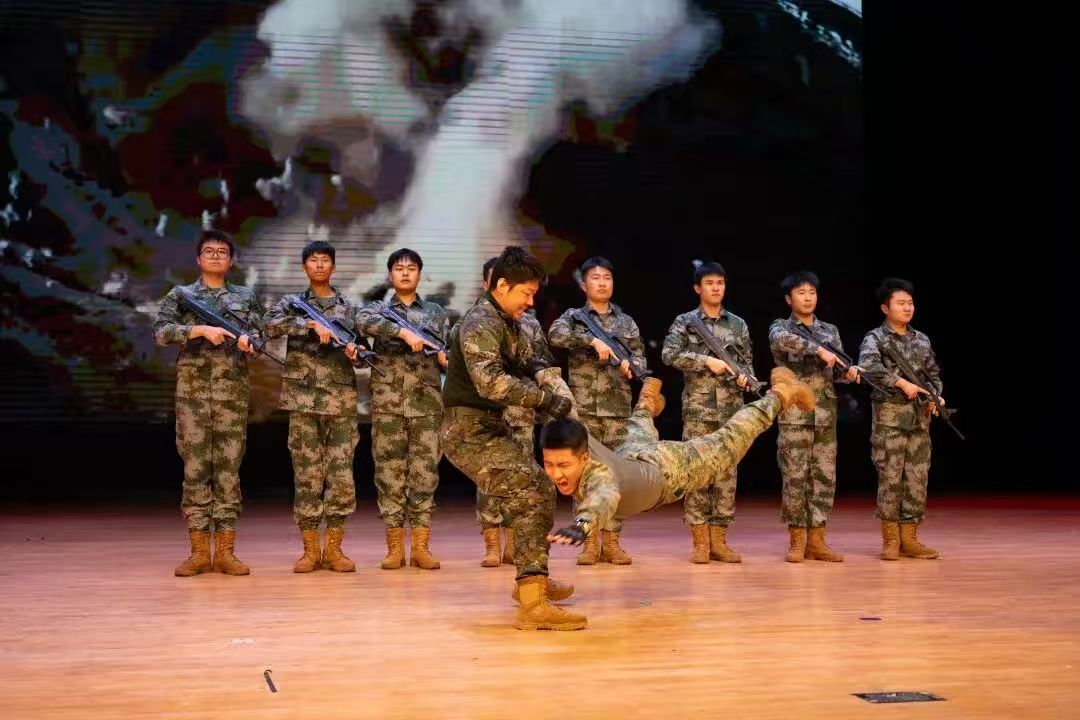 退伍大学生士兵代表谢晓东、刘相君、王纪颖讲述了他们的军旅经历与成长感悟,生动呈现出他们在校园与军营之间的淬炼历程。志愿入伍学生代表闫震东表达了他的军营梦想和追梦历程,以实际行动感召青年学子携笔从戎、献身国防。