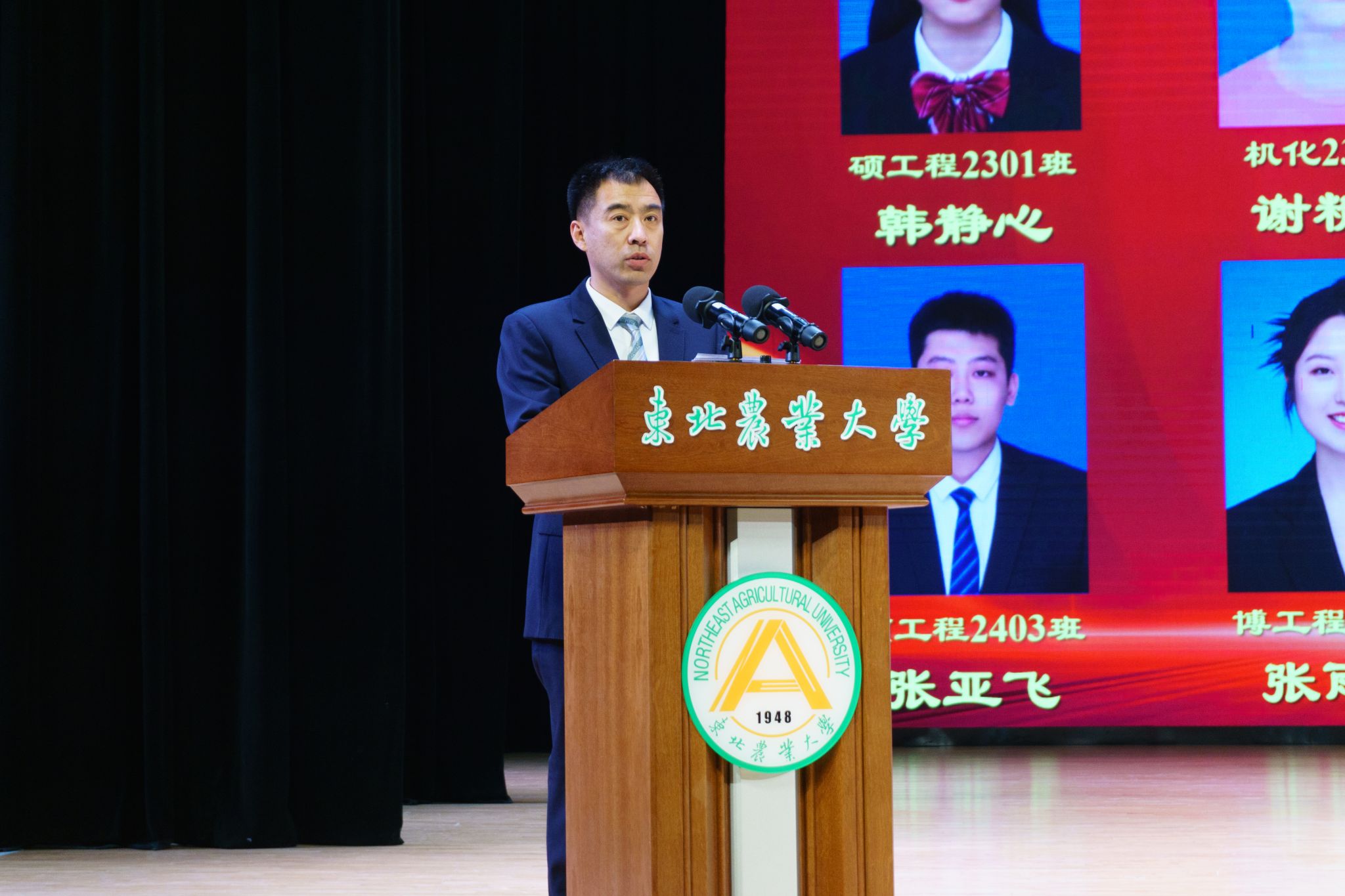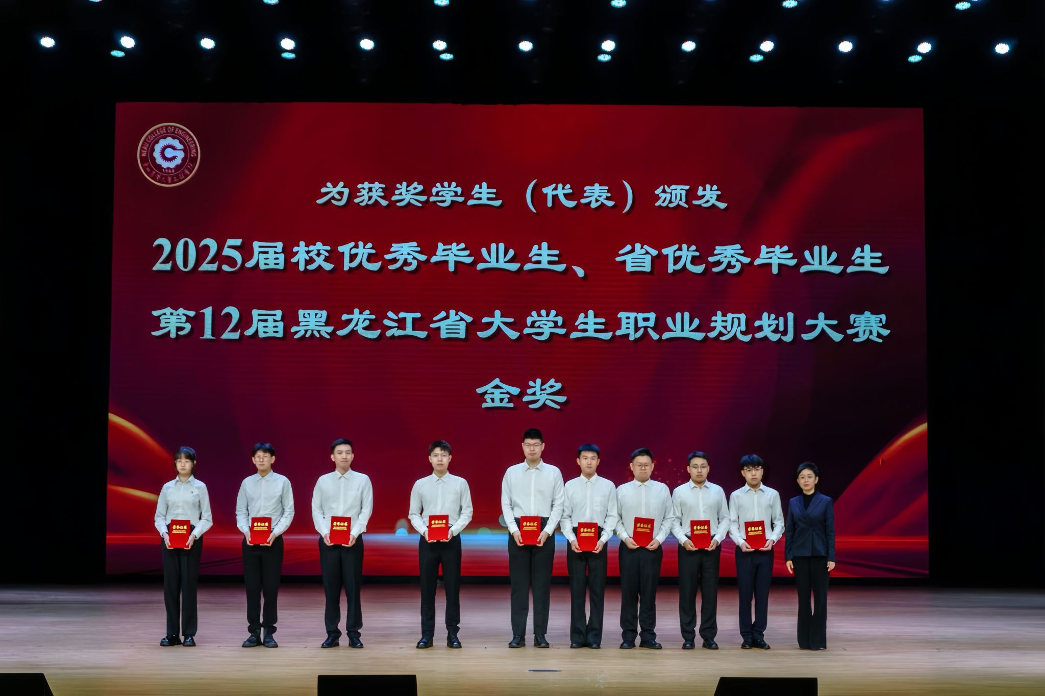 会上,孟繁美、杨秀坤、李龙海、窦大昶、黄步海分别宣读了《关于颁发2023—2024学年度本科生单项奖学金、先进班集体的决定》《关于表彰2023-2024学年度研究生先进班集体、优秀研究生、优秀研究生干部及省级以上优秀个人的决定》《关于表彰2023-2024学年度星级文明寝室的决定》《关于表彰2023-2024学年度优秀共青团员、共青团干部及校五四红旗团支部的决定》《关于表彰2025届校优秀毕业生、省优秀毕业生的决定》《关于表彰第12届黑龙江省大学生职业规划大赛金奖获奖者的决定》《关于颁发2023—2024学年度国家励志奖学金的决定》《关于颁发2023—2024学年度本科生国家奖学金、研究生国家奖学金的决定》,与会领导为获奖集体和个人颁奖。