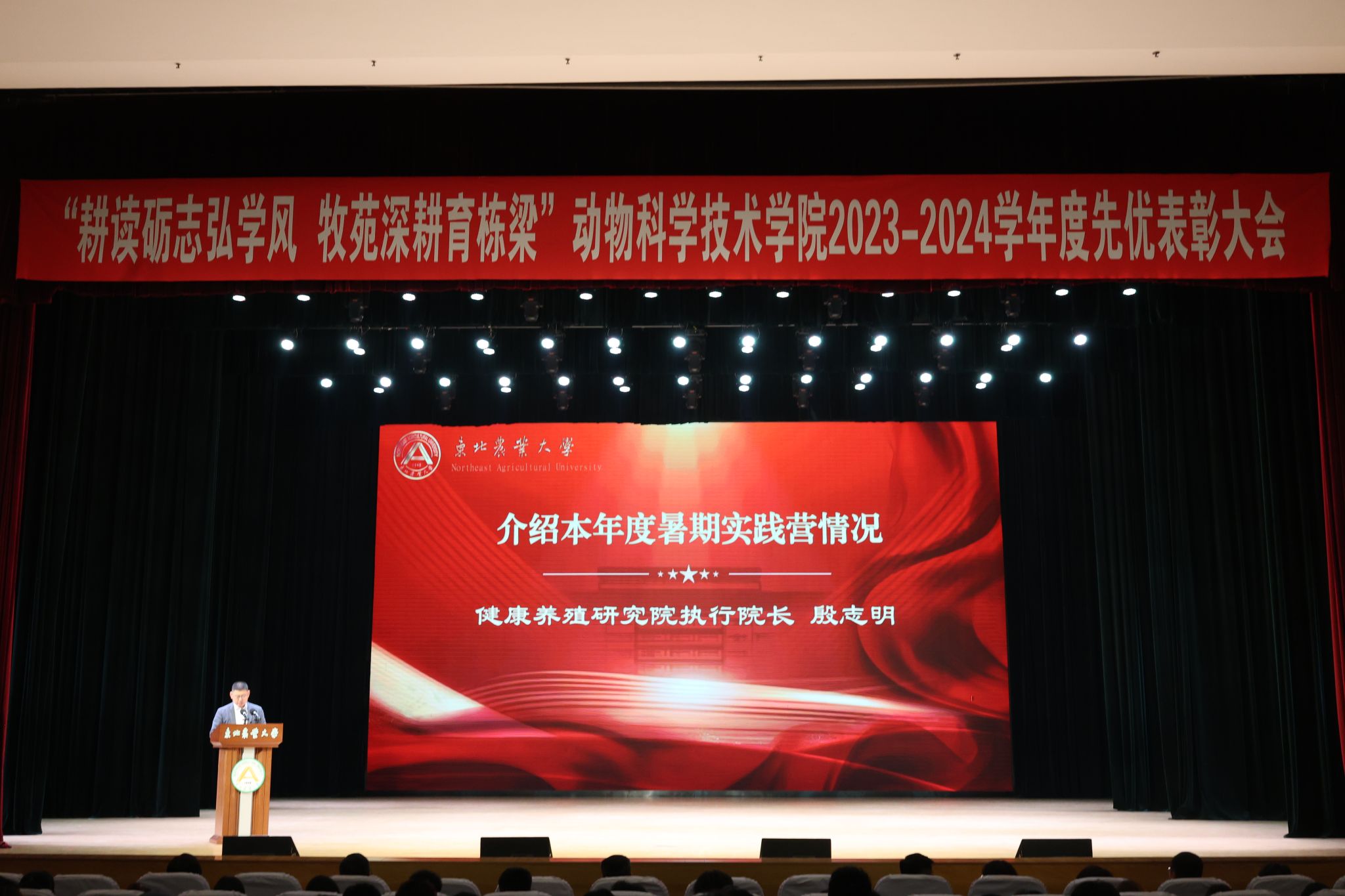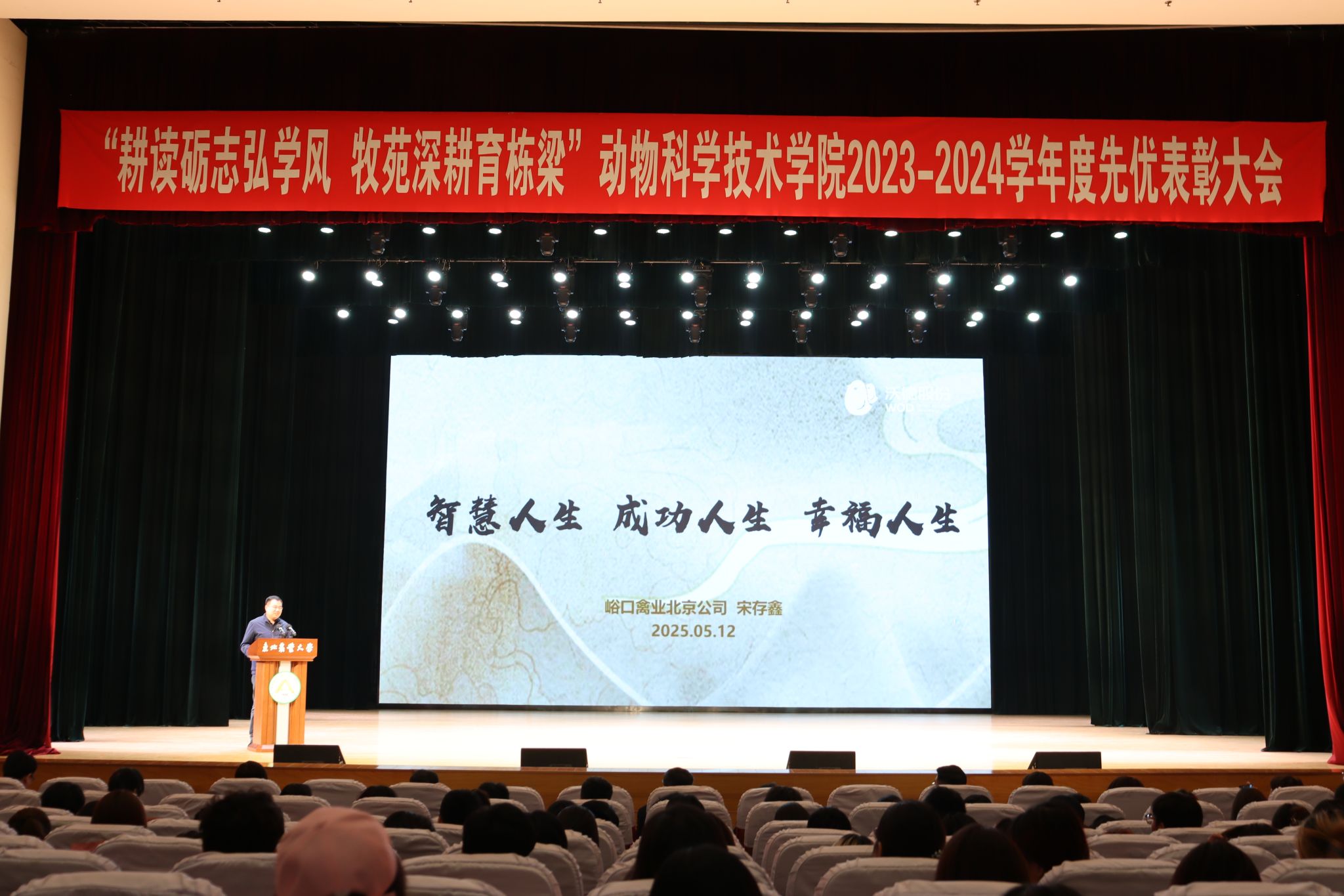 为凝聚榜样力量,营造积极向上的育人氛围,引导学生立志书写挺膺担当的青春篇章,5月12日,动物科学技术学院召开“耕读砺志弘学风,牧苑深耕育栋梁”2023-2024学年度先优表彰大会暨2025年学院“产教融合 勤耕重读”暑期实践营启动仪式。北京市华都峪口禽业有限责任公司北京公司总经理宋存鑫、总经办主任齐利娜,我校团委书记吕嘉昌、招生就业处副处长吴立龙、学生工作部(学生处、武装部)副部(处)长刘钊熠、动物科学技术学院领导班子和全体辅导员参加会议。会议由学院党委副书记焦阳主持。