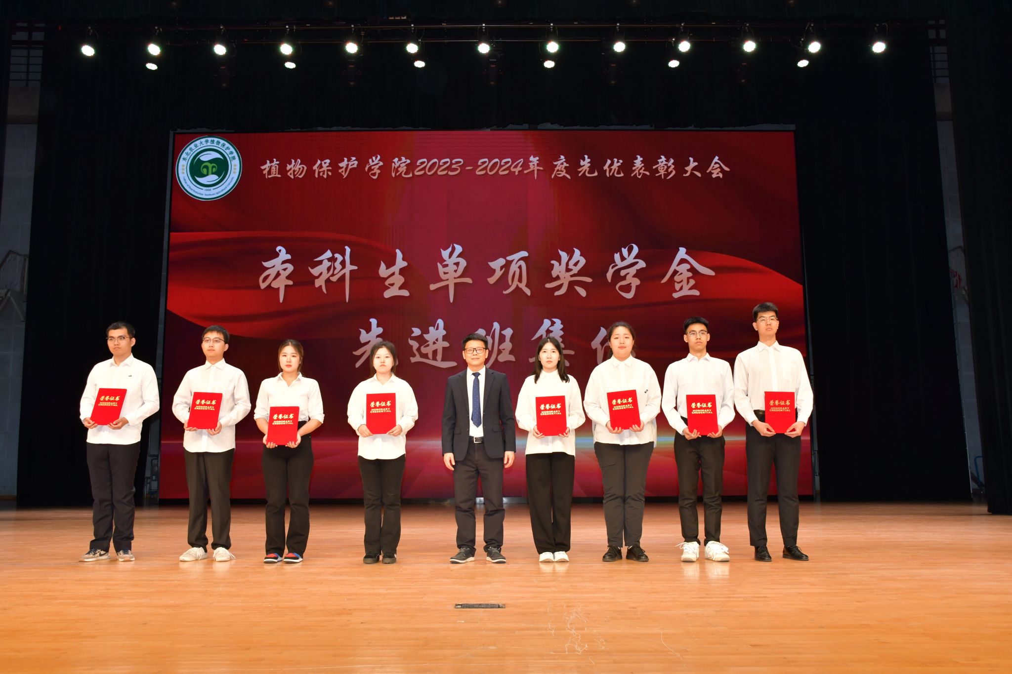植物保护学院副院长程晓非宣读《关于颁发2023—2024学年度本科生单项奖学金、先进班集体的决定》,并为获奖学生颁奖。