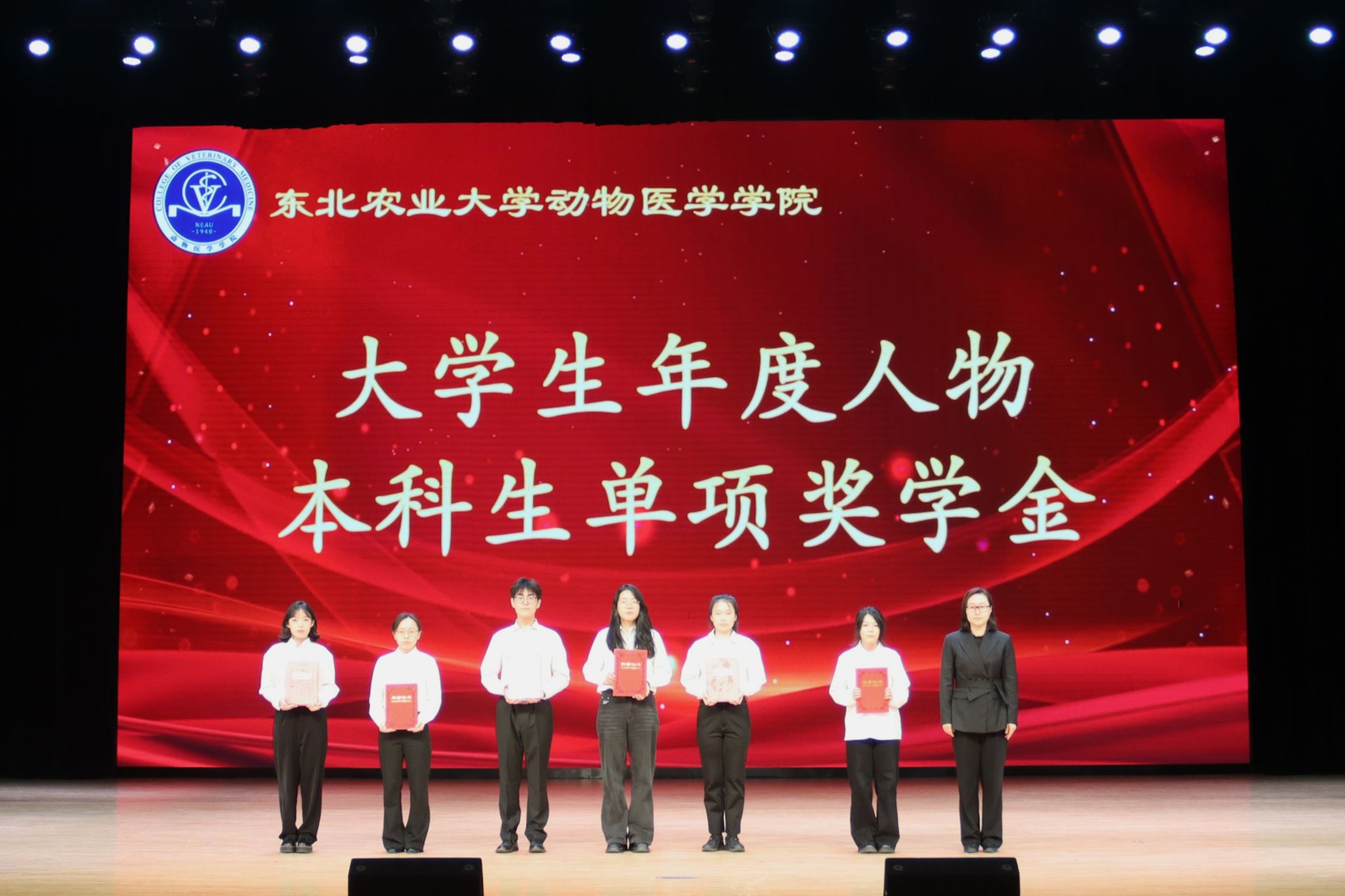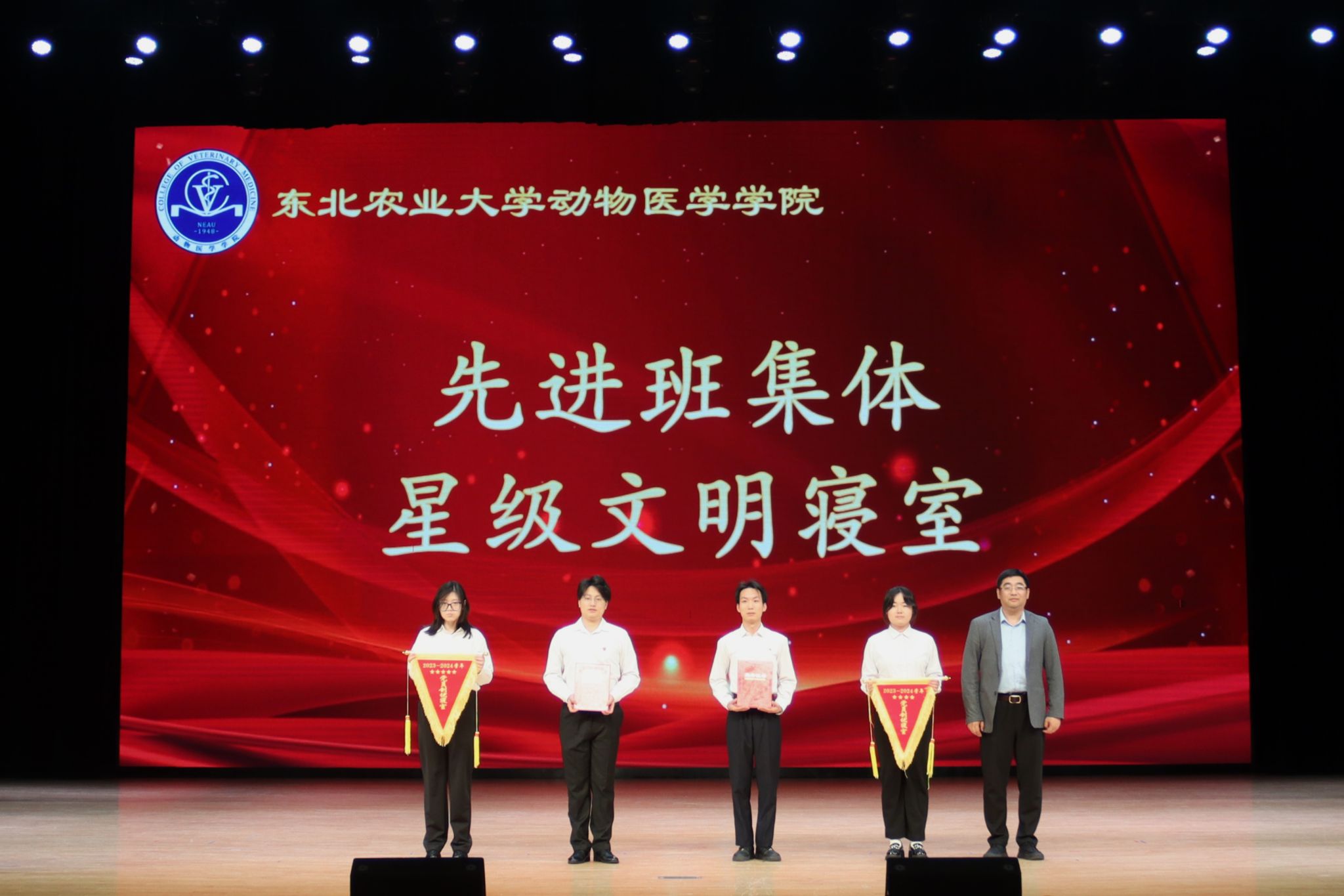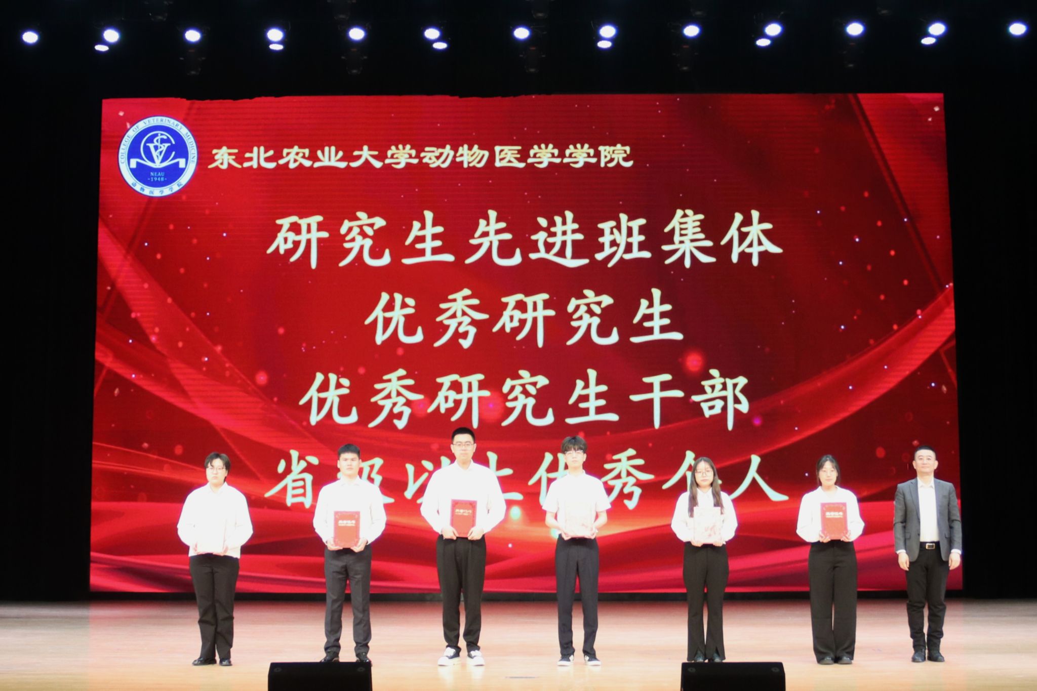 与会领导分别宣读了《关于颁发2024年研究生国家奖学金、2023-2024学年度本科生国家奖学金、国家励志奖学金的决定》《关于表彰2023-2024学年度本科生优秀班主任、2024-2025学年共青团东北农业大学委员会先进集体、优秀个人、第九届亚洲冬季运动会动物医学学院优秀志愿者的决定》《关于颁发2023-2024学年度大学生年度人物、本科生单项奖学金、2025年黑龙江省普通高等学校优秀毕业生的决定》《关于表彰2023-2024学年度研究生先进班集体、本科生先进班集体、星级文明寝室、优秀研究生、优秀研究生干部及省级以上优秀个人的决定》,并为获奖集体和个人颁奖。