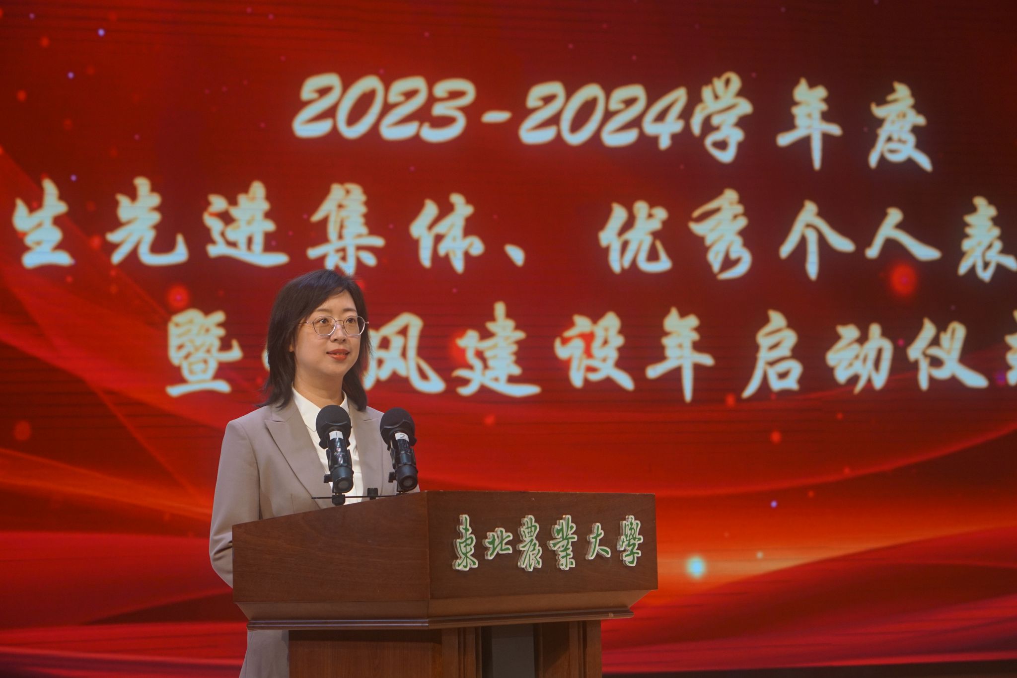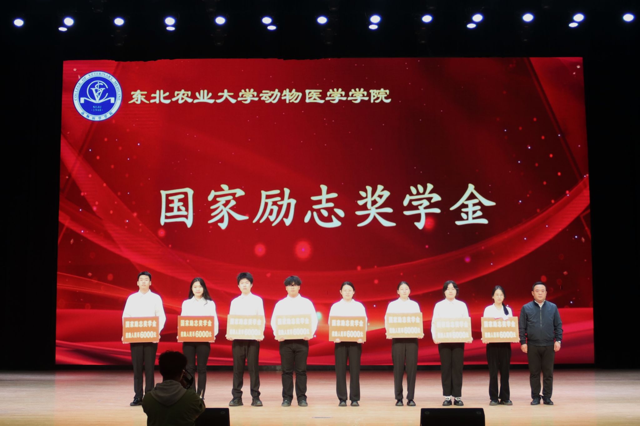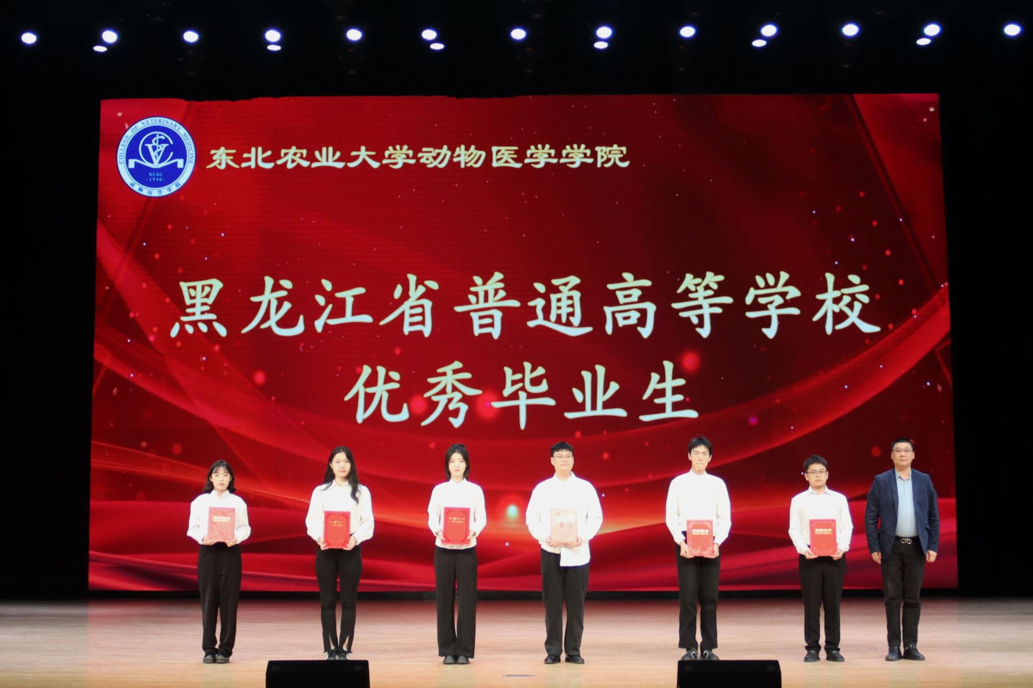 与会领导分别宣读了《关于颁发2024年研究生国家奖学金、2023-2024学年度本科生国家奖学金、国家励志奖学金的决定》《关于表彰2023-2024学年度本科生优秀班主任、2024-2025学年共青团东北农业大学委员会先进集体、优秀个人、第九届亚洲冬季运动会动物医学学院优秀志愿者的决定》《关于颁发2023-2024学年度大学生年度人物、本科生单项奖学金、2025年黑龙江省普通高等学校优秀毕业生的决定》《关于表彰2023-2024学年度研究生先进班集体、本科生先进班集体、星级文明寝室、优秀研究生、优秀研究生干部及省级以上优秀个人的决定》,并为获奖集体和个人颁奖。