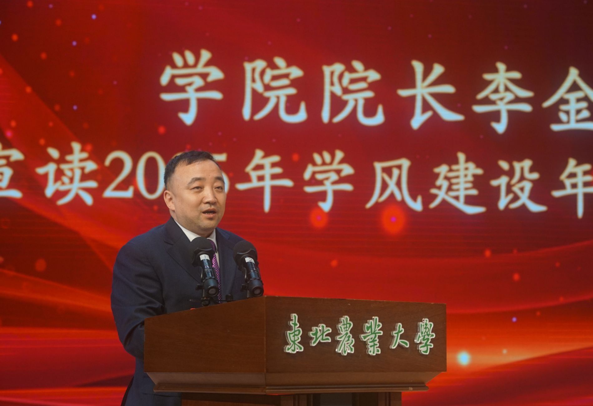 李金龙宣读《动物医学学院2025年学风建设年实施方案》。方案围绕管理肃学风、活动育学风、竞赛强学风、榜样带学风四方面进一步巩固学风建设在人才培养中的重要作用,强化学生在学风建设中的主体地位,旨在引导学生秉承“厚德载医 博学精医”的精神理念,全面提高兽医学科“双一流”建设质量,促进学院人才培养提质增效。
