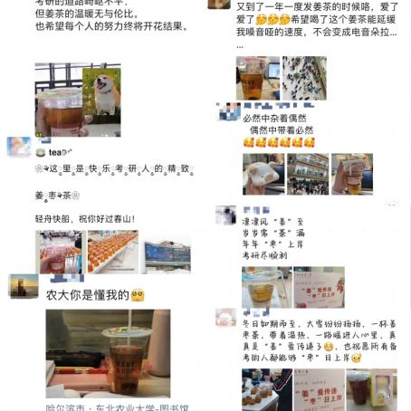 学生工作部连续第三年为考研学子发放姜枣茶,精心准备了2000余杯“暖茶”,在寒冷的冬日里为考研学子送出温暖,今年还同步准备了“彩蛋杯”和解压小礼品,一份惊喜、一份温暖,帮助考研学子缓解备考的压力与疲惫,以充沛的精力和饱满的热情投入到考研复习之中。此外,为帮助我校考研学子调试备考心态,缓解备考压力,学生工作部心理健康中心开展“考研心理加油站”“科学调‘焦’,减压赋能”等团体心理辅导活动,帮助备考同学掌握调适心理状态的放松方法和技巧,以积极向上的心态迎接考试,相信所有考研学子定能不负韶华,一战成“硕”,金榜题名!