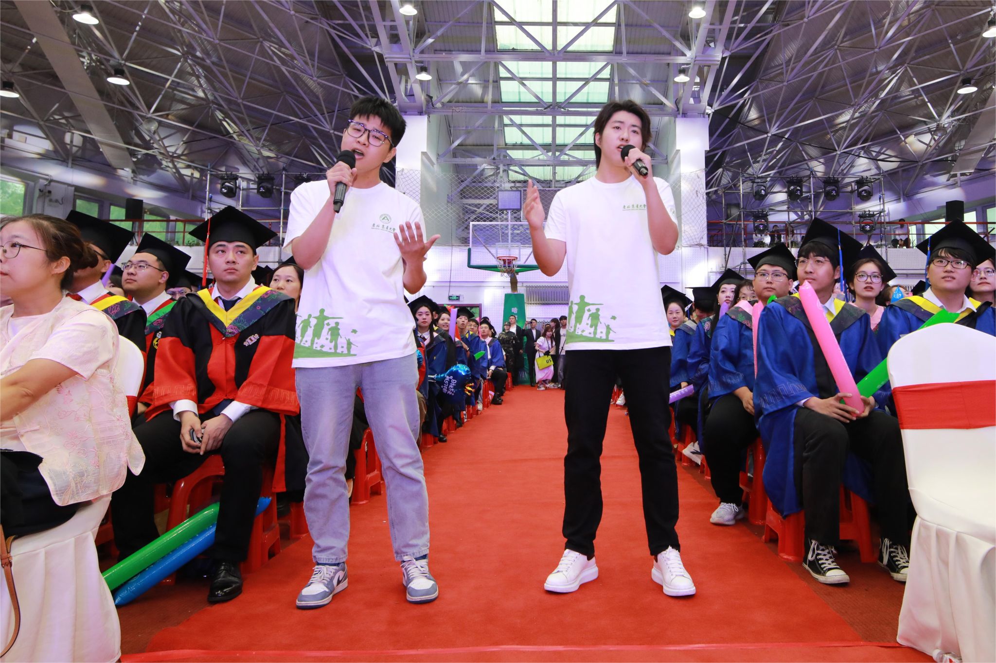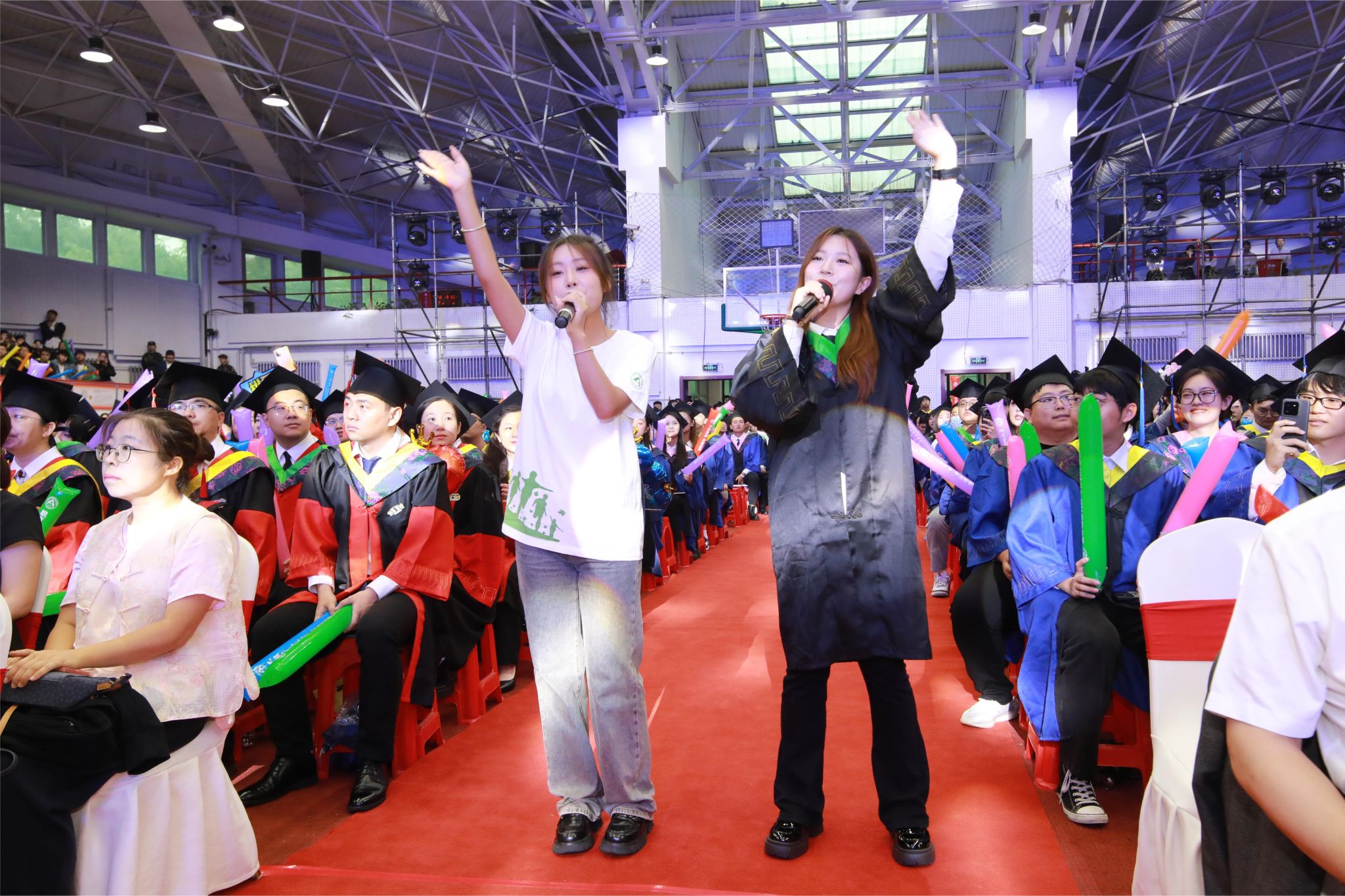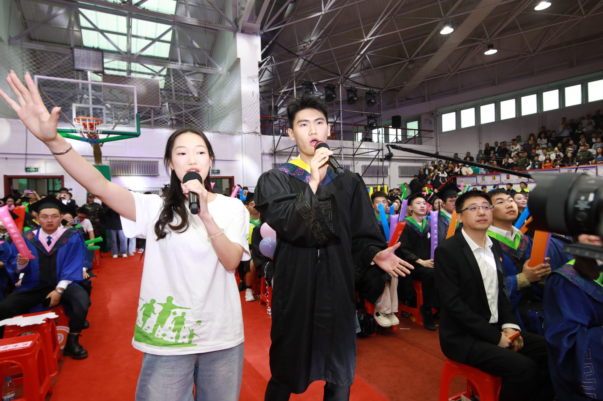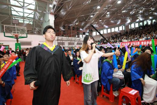 暖场节目快闪表演,毕业生、在校生和教师代表演唱了《那些年》《离别开出花》《如愿》《小美好》等歌曲,同步MV播放毕业生在校生活期间照片,入学时的青涩、操场上挥洒的汗水、课堂上的专注、实验室里的探索……每一帧都记录着毕业生们的成长与蜕变。